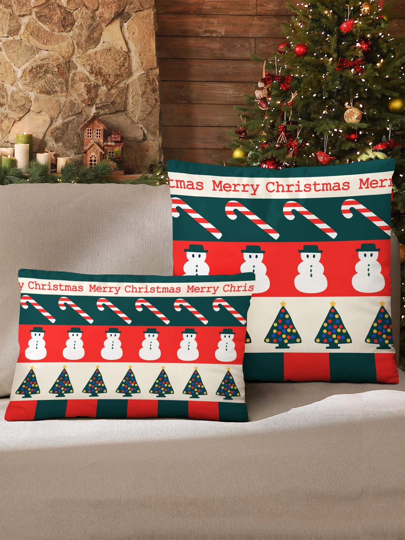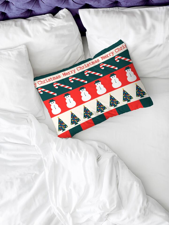 1 pezzo Federa per cuscino senza riempitivo Natale pupazzo di neve & con stampa dell'albero