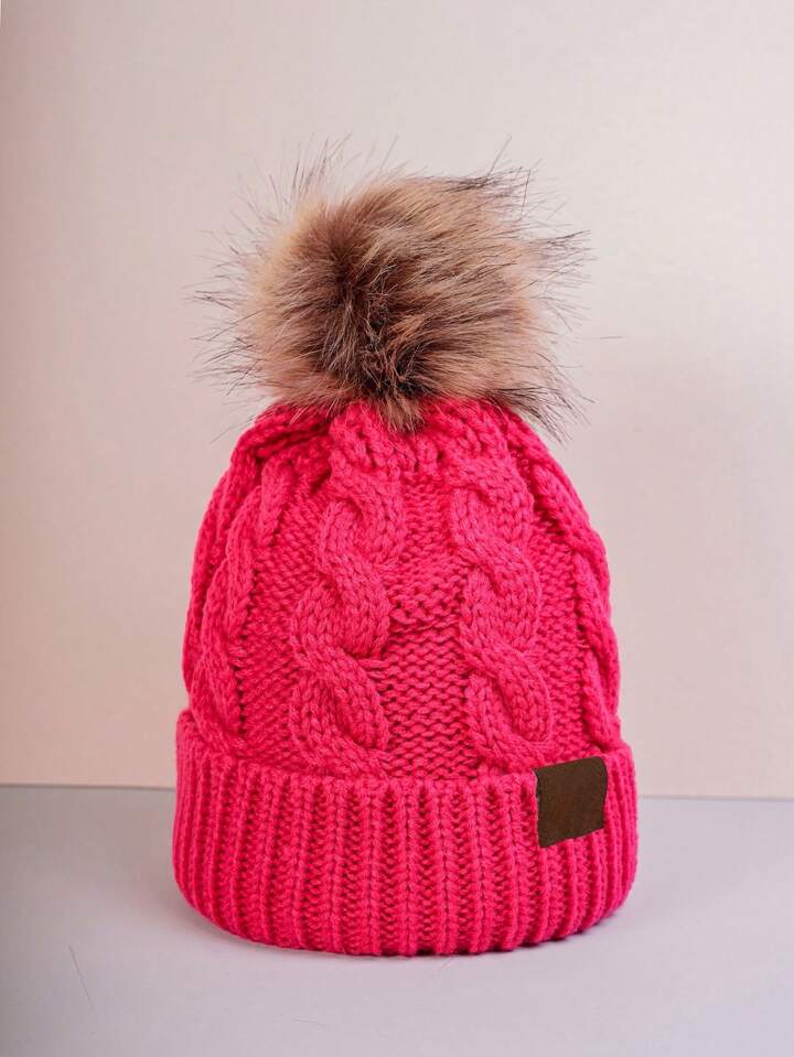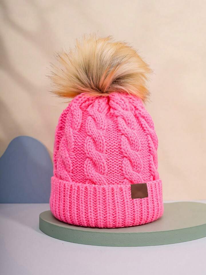 1 Pezzo Classico Berretto Unisex Da Sci In Maglia A Coste, Stile Y2k, Con Decorazione Palla Di Pelliccia, Caldo, Traspirante, Alla Moda E Versatile, Adatto Per L'uso Quotidiano E Attività All'aperto In Autunno E Inverno.