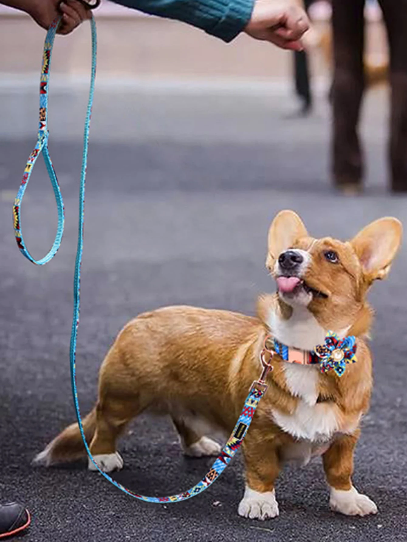 1 pezzo Collare per animali domestici con motivo geo & 1 pezzo guinzaglio