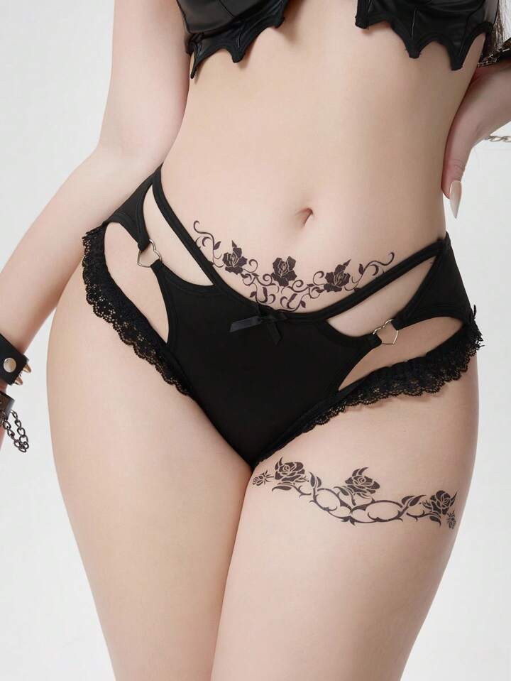 Goth 1 pezzo Perizoma gotico con fiocco, decorazione in pizzo e fibbia metallica a forma di cuore