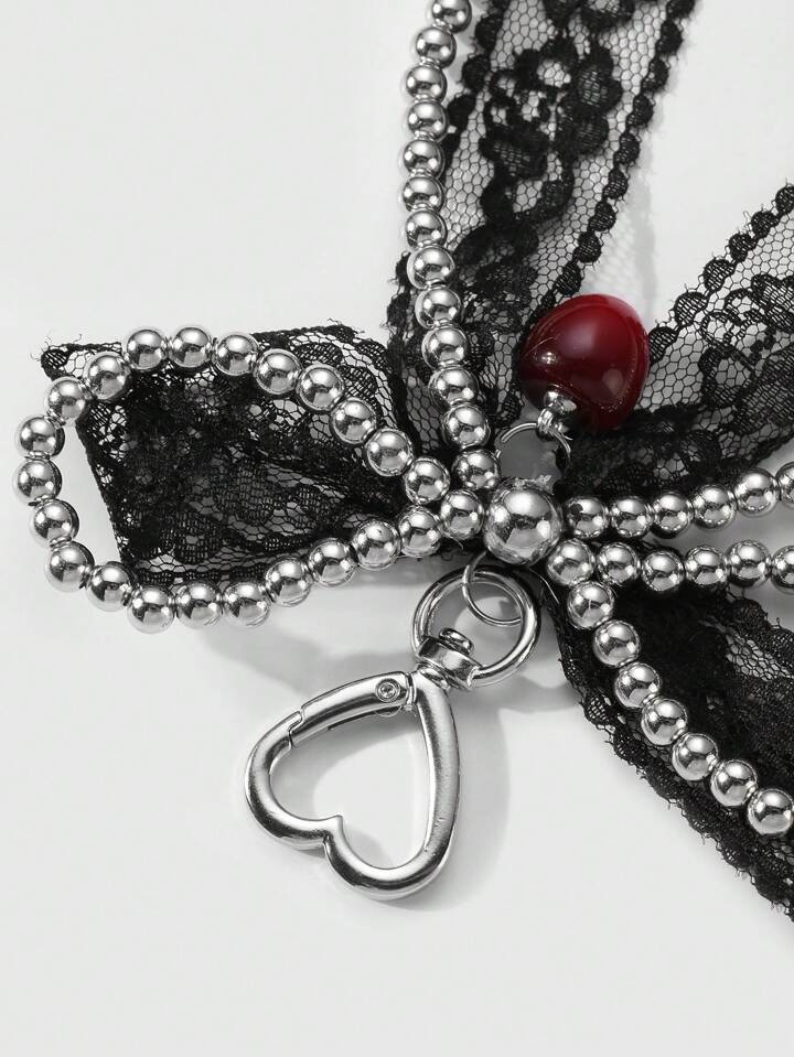 Goth 1 pezzo portachiavi stile gotico fatto a mano con perline in argento CCB, fiocco in pizzo nero e ciondolo a forma di ciliegia, accessorio di moda alla moda per le donne, adatto per uso quotidiano e come regalo di San Valentino