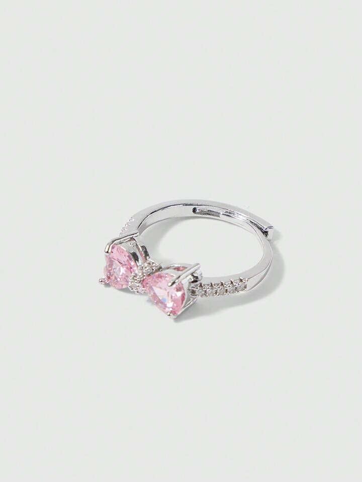 1 pezzo Anello aperto da donna kawaii con fiocco rosa e pietra di zirconia