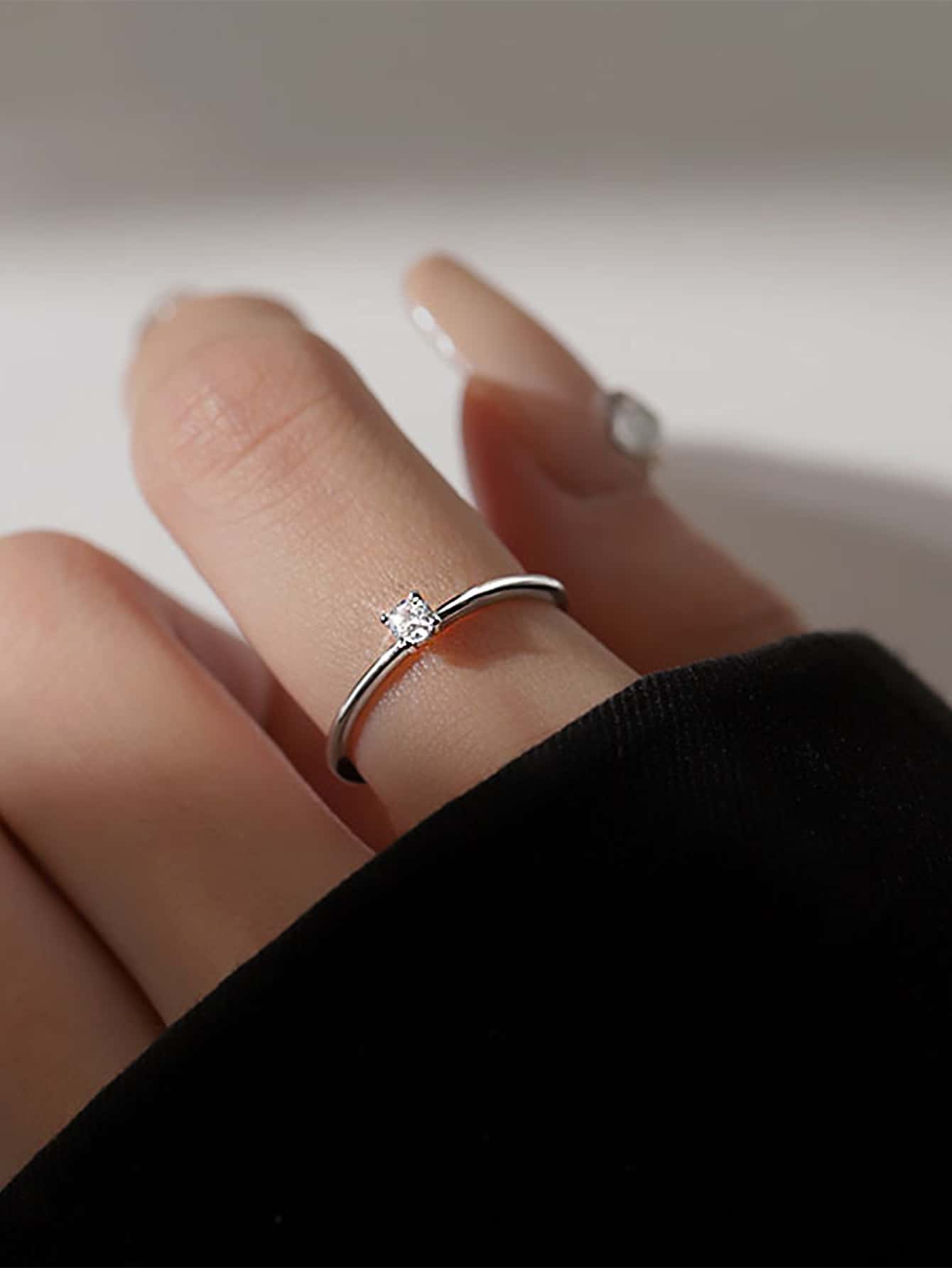Donna 1 pezzo Anello minimalista in rame con strass singolo per per quotidiano regalo per appuntamenti