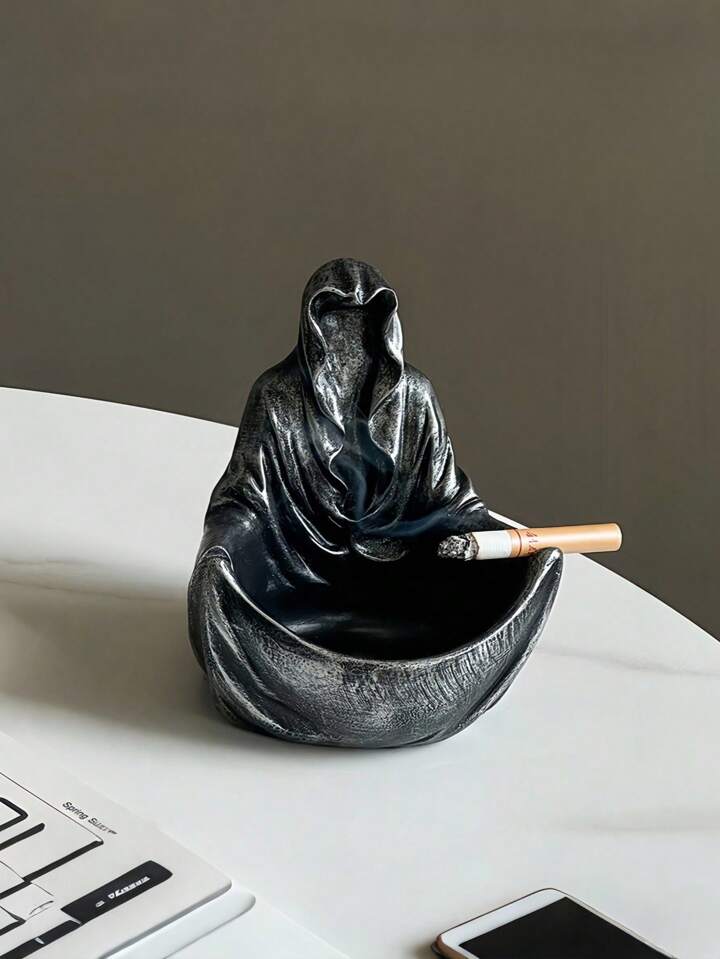 Goth 1 pezzo Posacenere con figura scura misteriosa, decorazione da scrivania gotica premium per uomo, accessorio creativo per la casa e l'ufficio, regalo di lusso per marito/fidanzato/papà (compleanno, Natale, anniversario), decorazione da scrivania minimalista sofisticata con stile unico, Ognissanti