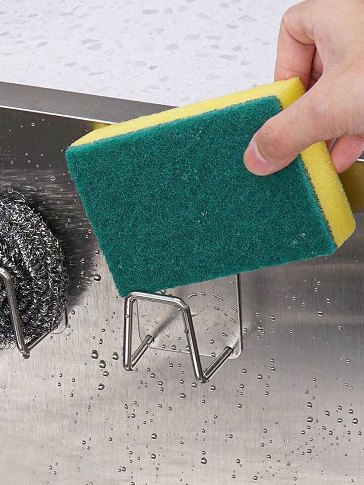 1 pezzo Porta-spugna senza fori, rastrelliera da parete per spugne, griglia da lavandino in acciaio inossidabile