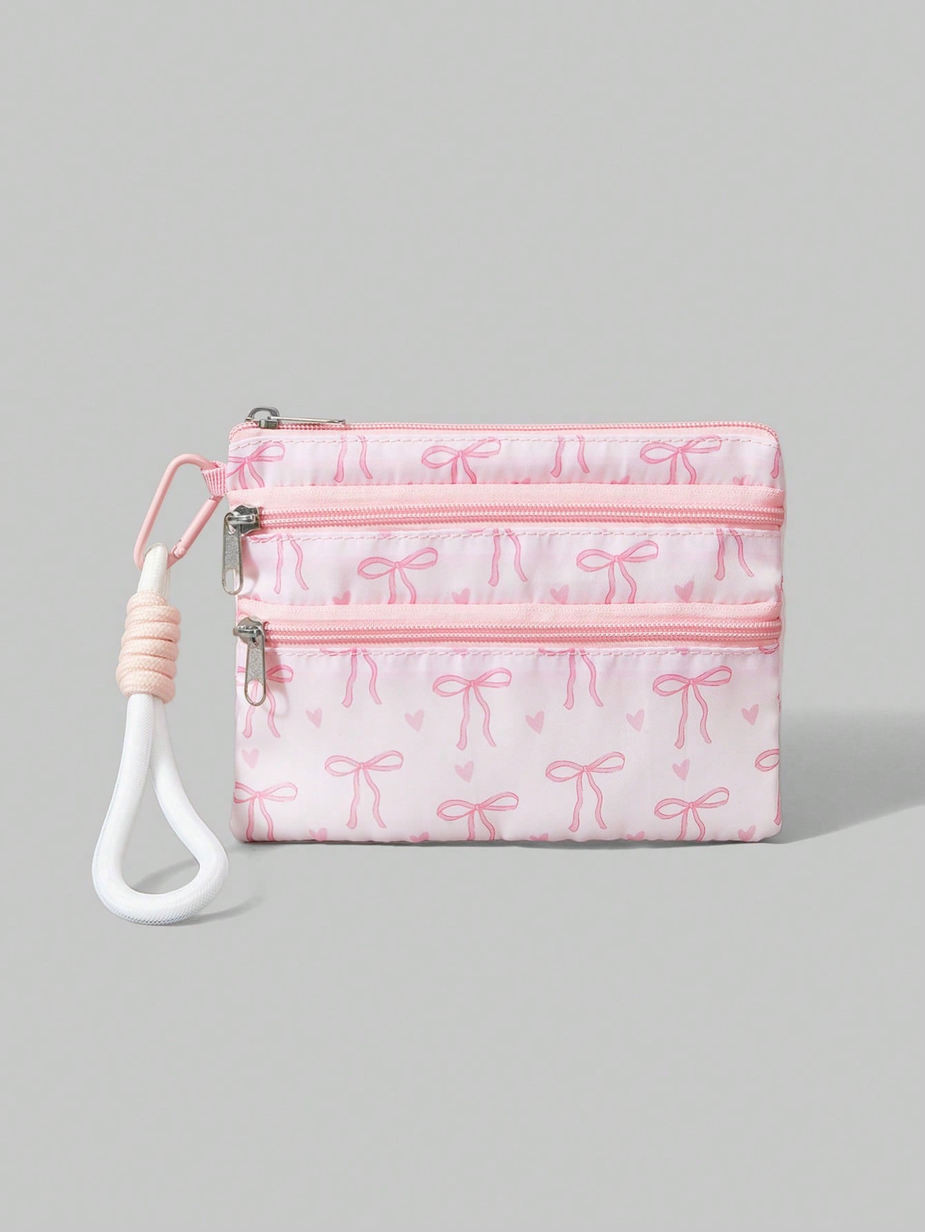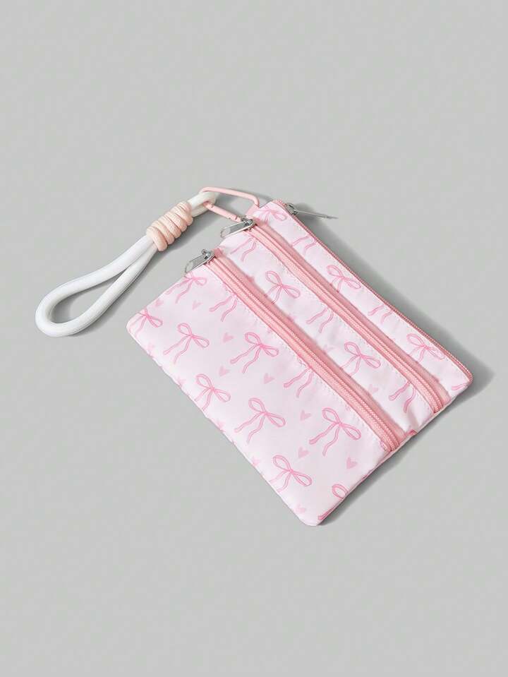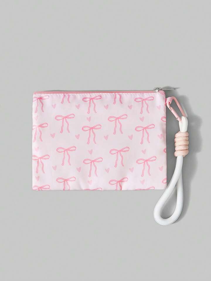 1 pezzo Borsa portatile kawaii multistrato di grande capacità con stampa a fiocco rosa e cuore