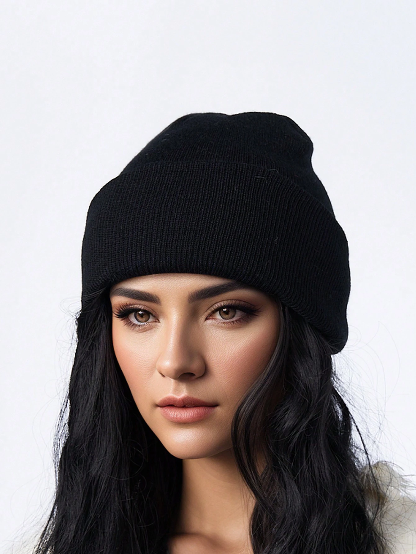 1 pezzo Cappello in maglia semplice a tinta unita per donne, stile invernale caldo e semplice, perfetto per l"abbigliamento quotidiano casual