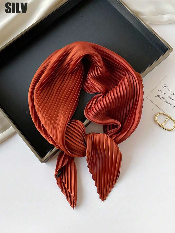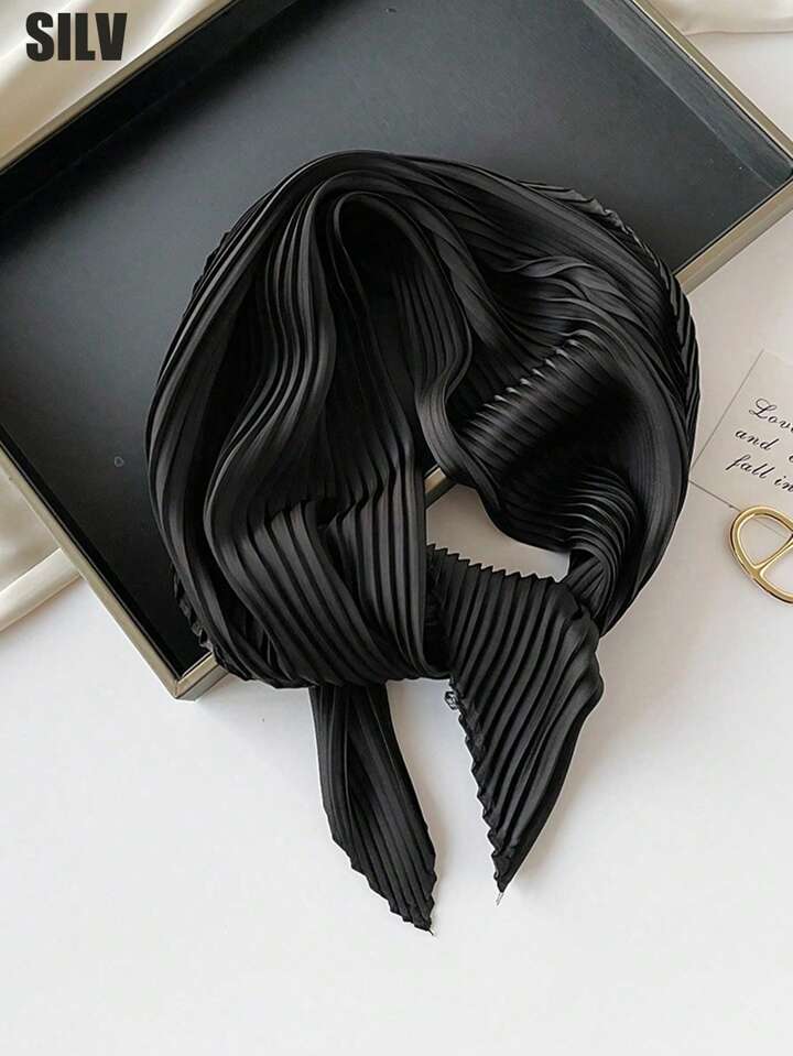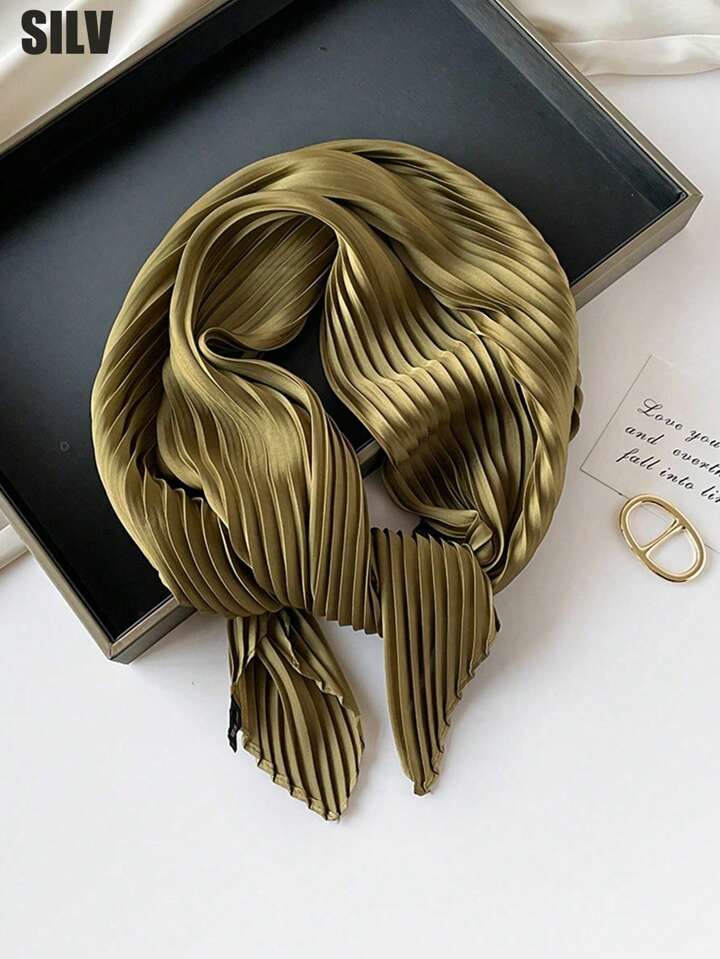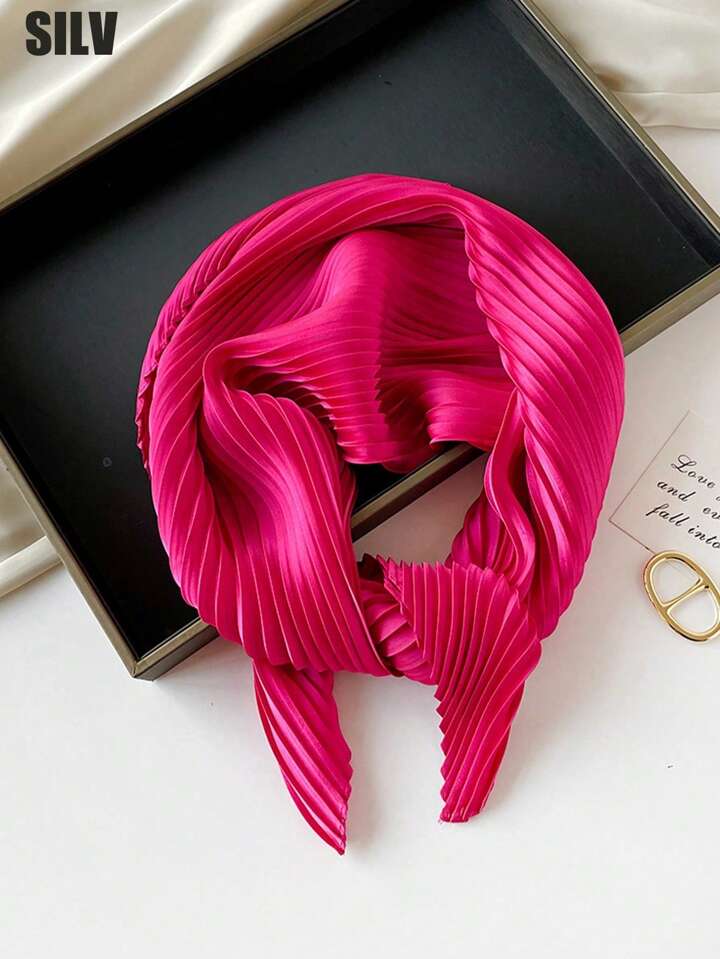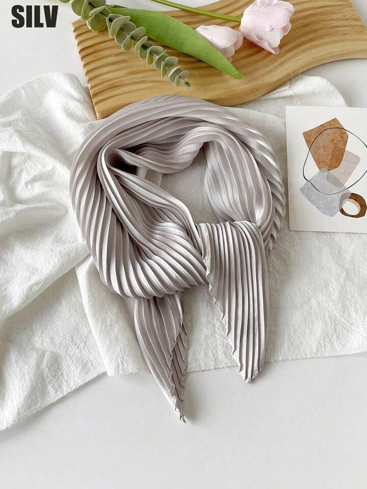 1 pezzo Foulard di raso plissettato tinta unita, sciarpa bandana di moda per donne, fascia per capelli, ideale per impreziosire il tuo look