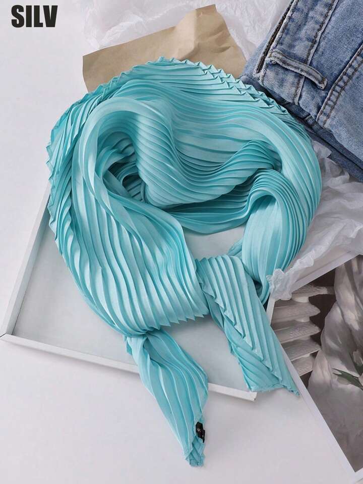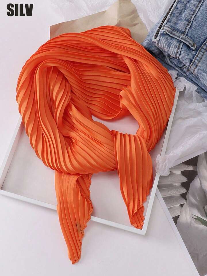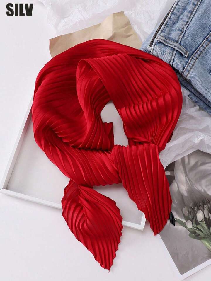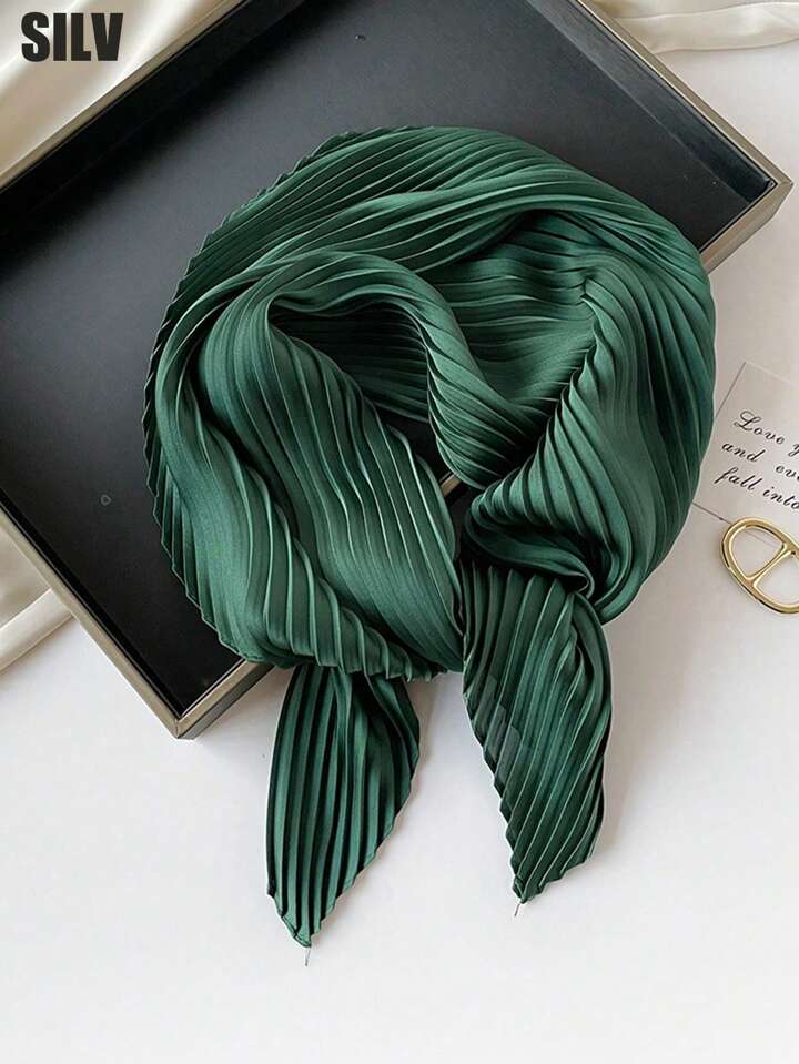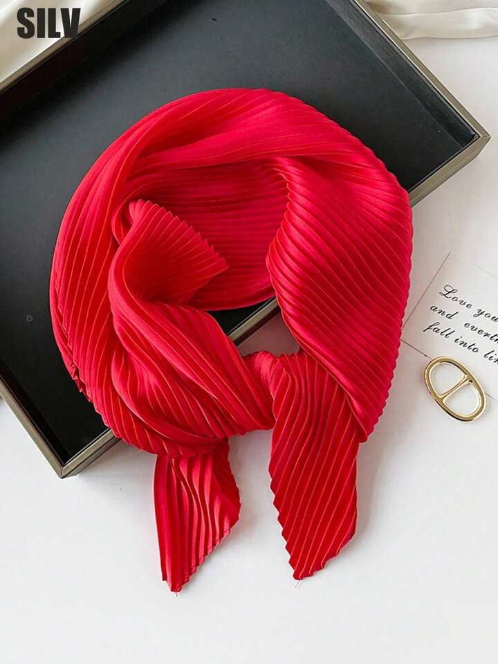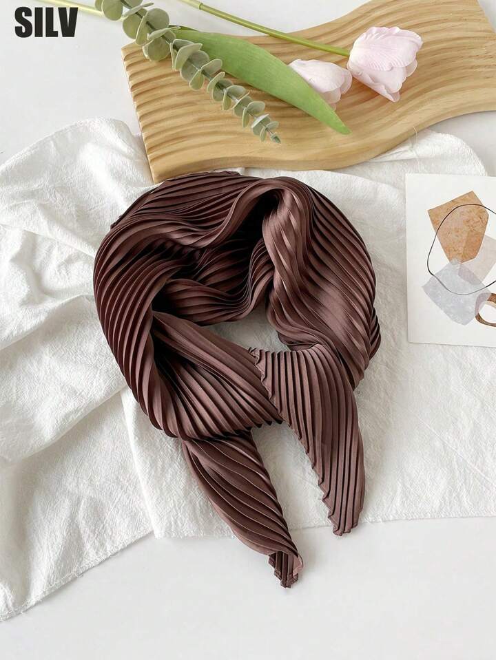 1 pezzo Foulard di raso plissettato tinta unita, sciarpa bandana di moda per donne, fascia per capelli, ideale per impreziosire il tuo look