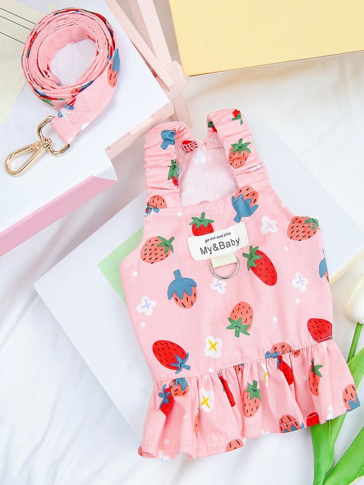 1 pezzo con stampa fragola Guinzaglio per animali domestici & 1 pezzo con design abito Imbracatura per animali