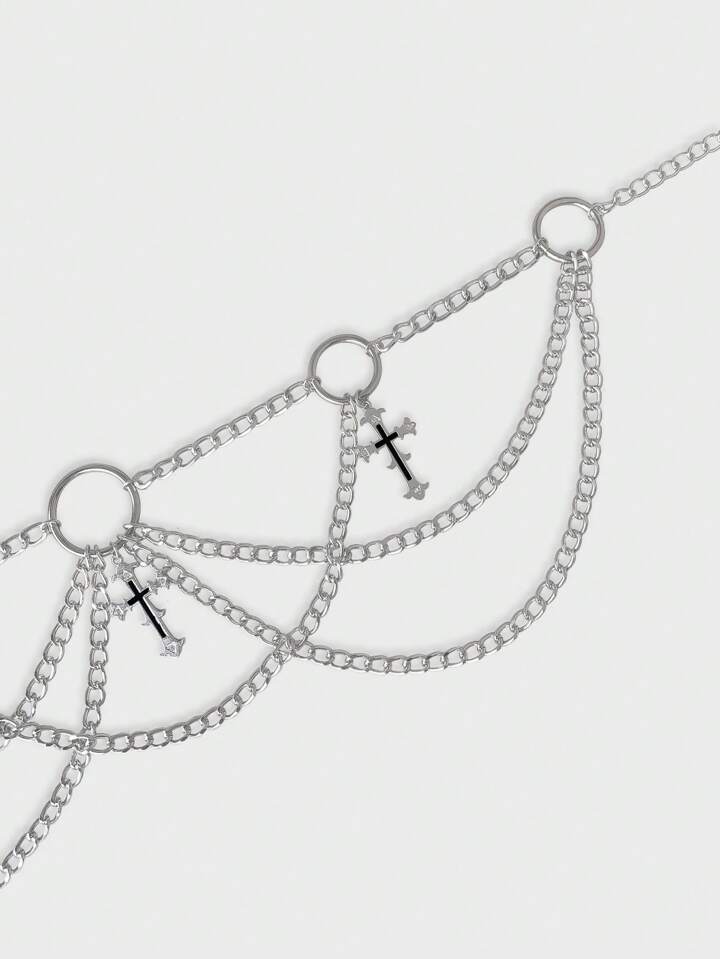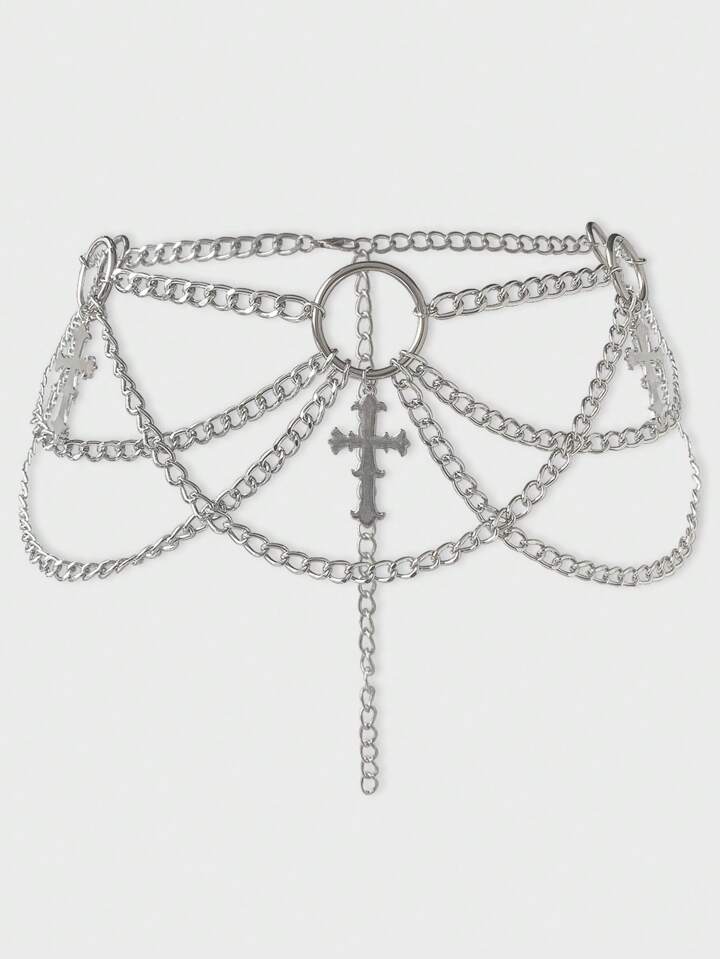 Goth 1 pezzo Catena vita stile gotico da donna in argento e nero con croce a strati, accessorio versatile per uso quotidiano e Ognissanti
