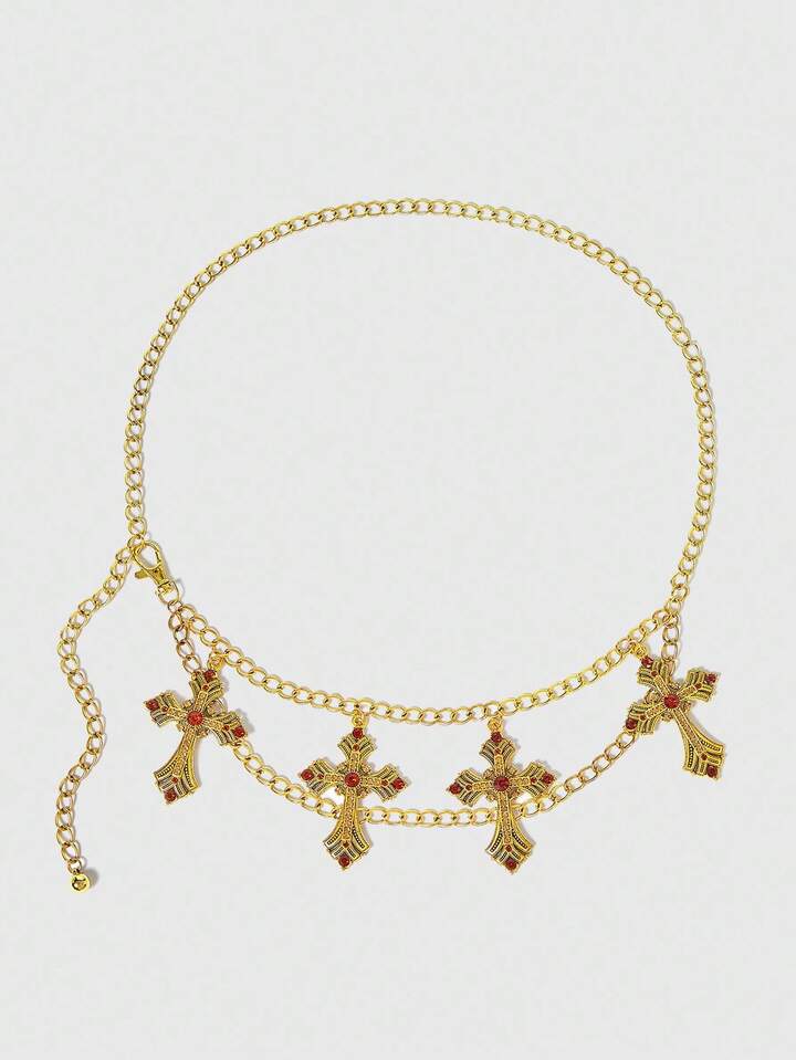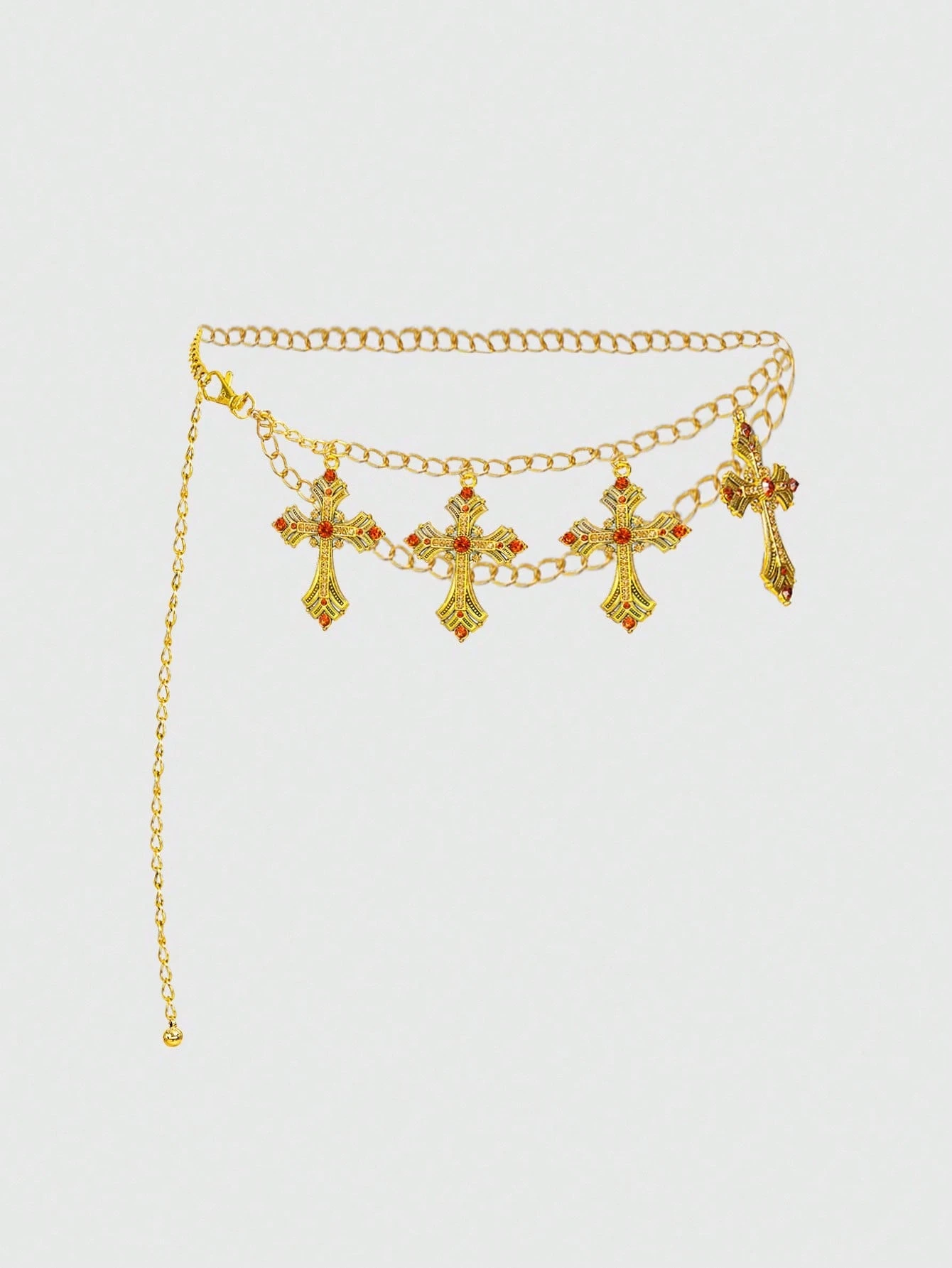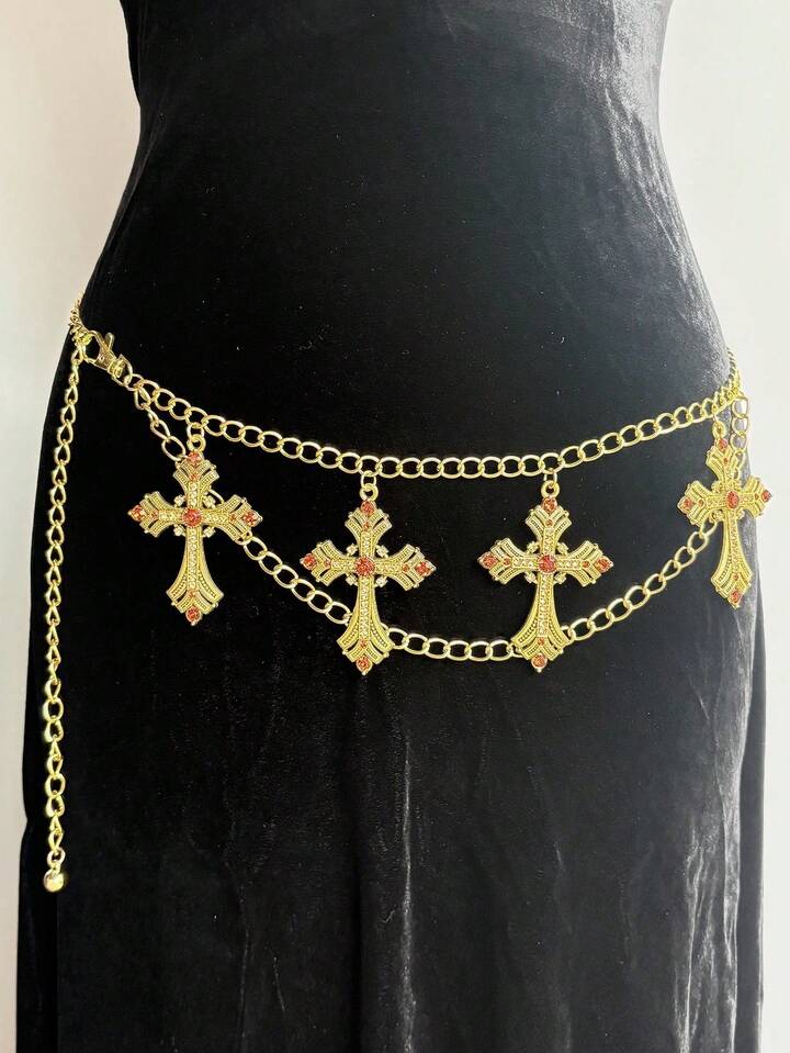 Goth 1 pezzo Catena vita stile gotico da donna in argento e nero con croce a strati, accessorio versatile per uso quotidiano e Ognissanti