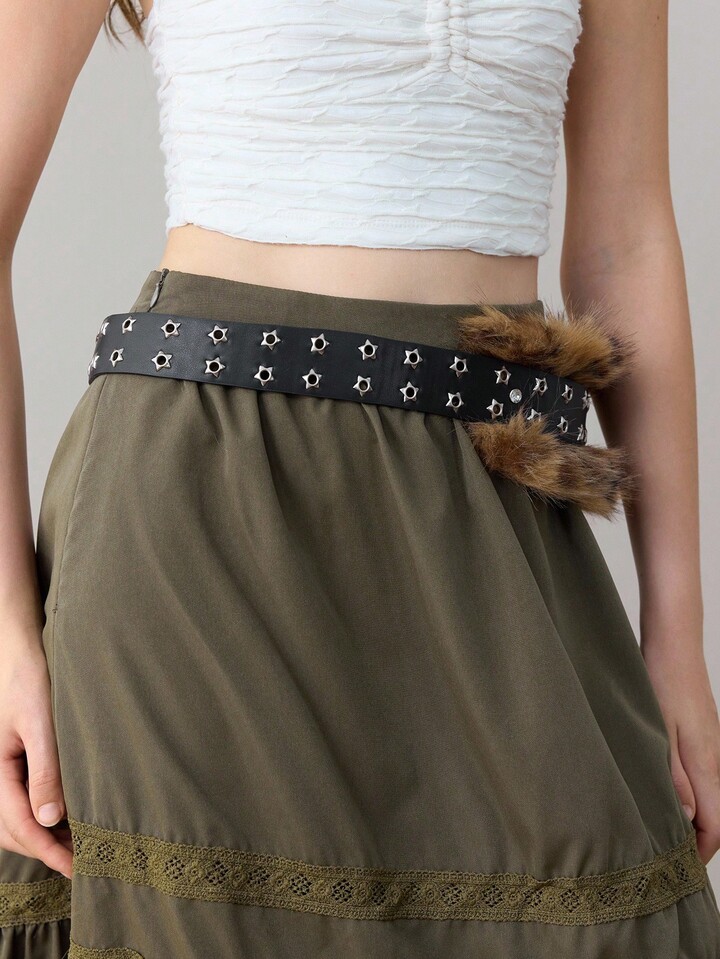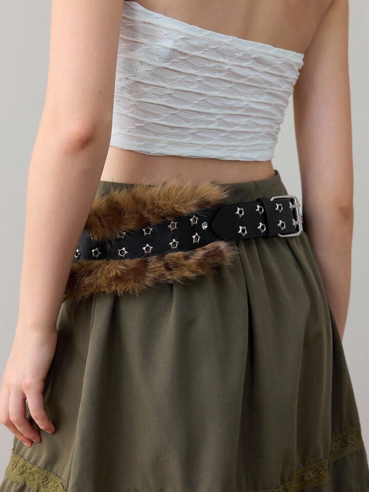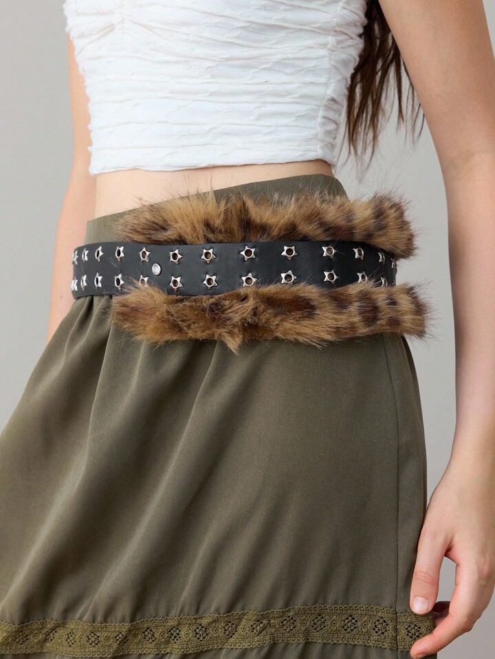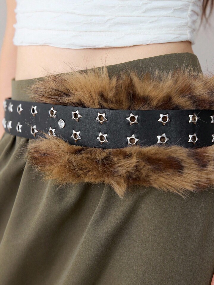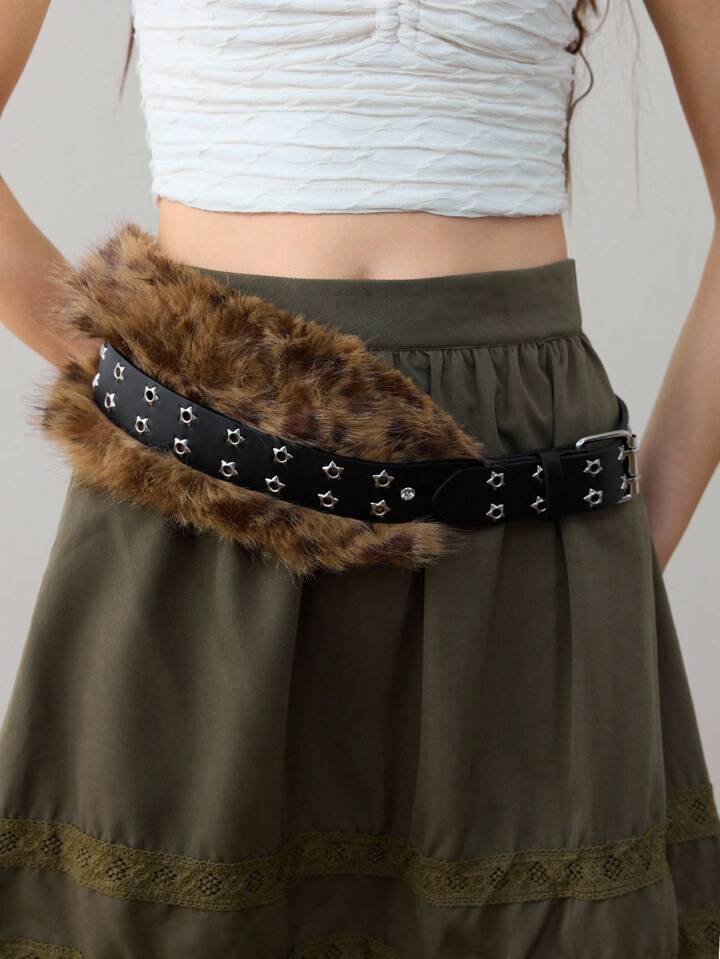 Goth 1 pezzo Cintura da con doppia fila di stelle, stampa leopardata e decorazioni di strass, stile gotico scuro boho Y2K, accessorio versatile per abiti, jeans, Ognissanti