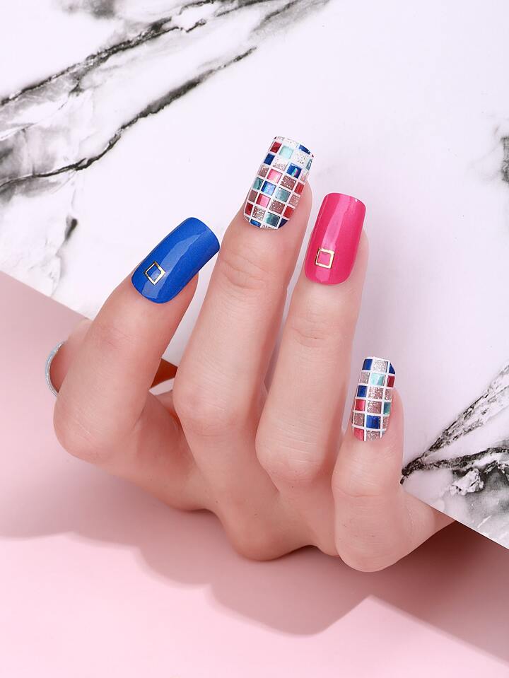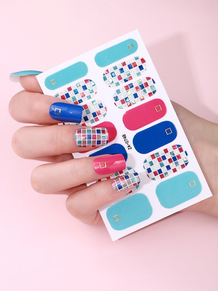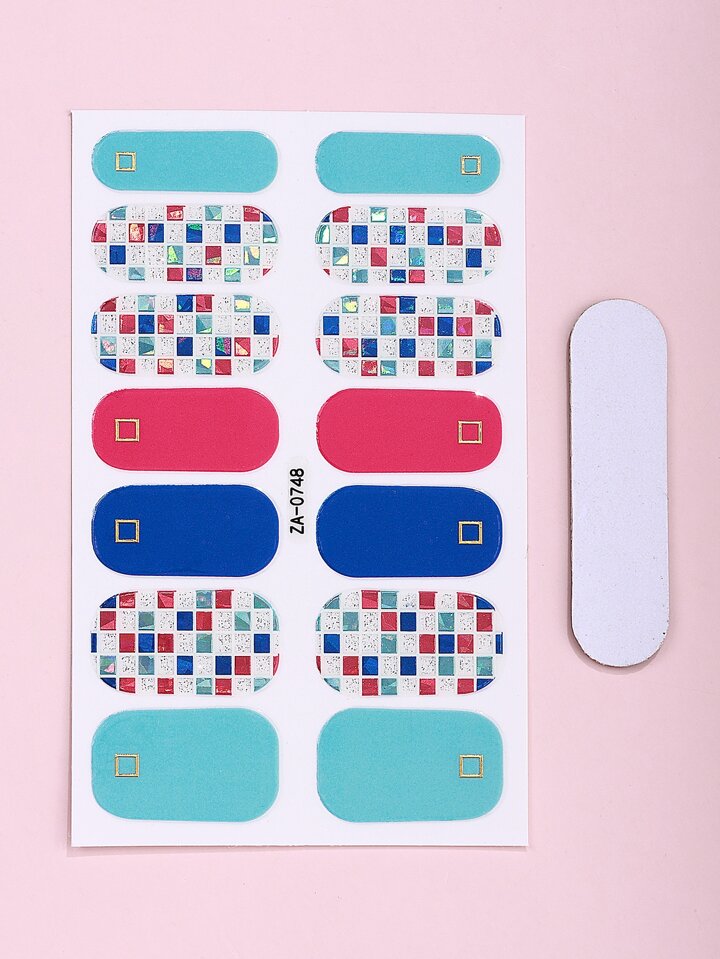 1 foglio Adesivo per unghie arte a quadri & 1 pezzo lima per unghie