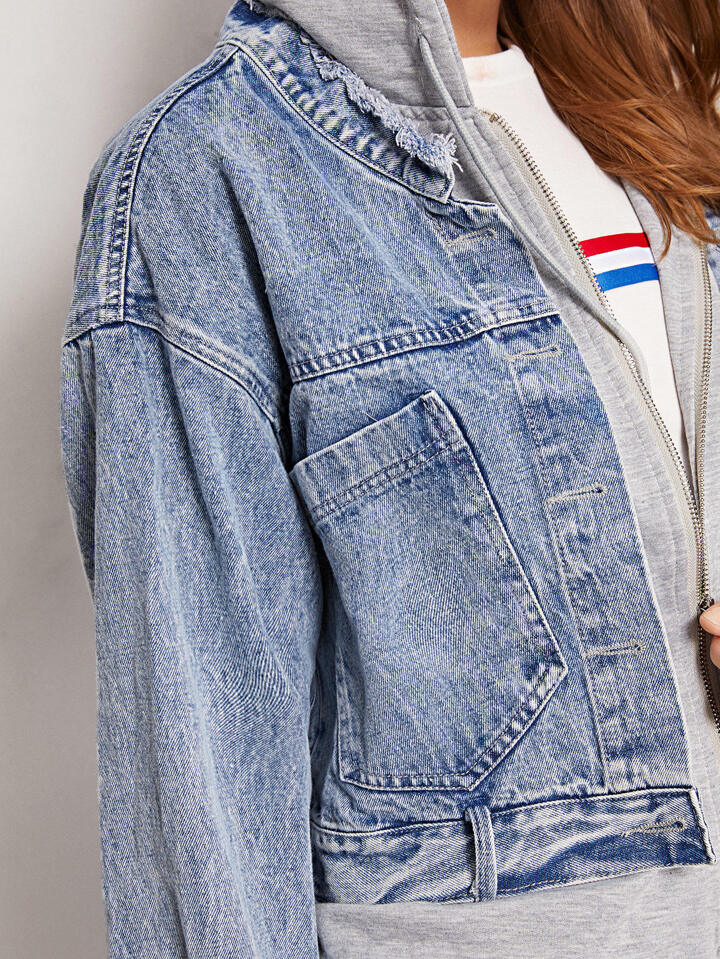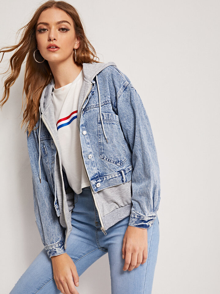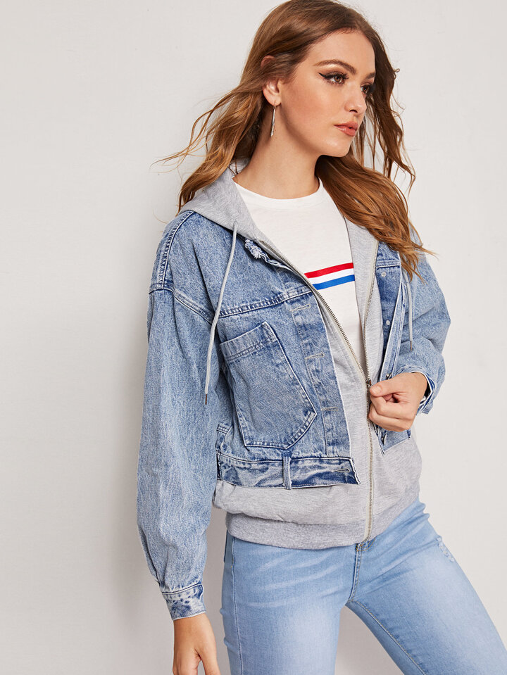 Giacca in denim sbiadita 2 in 1 con cappuccio