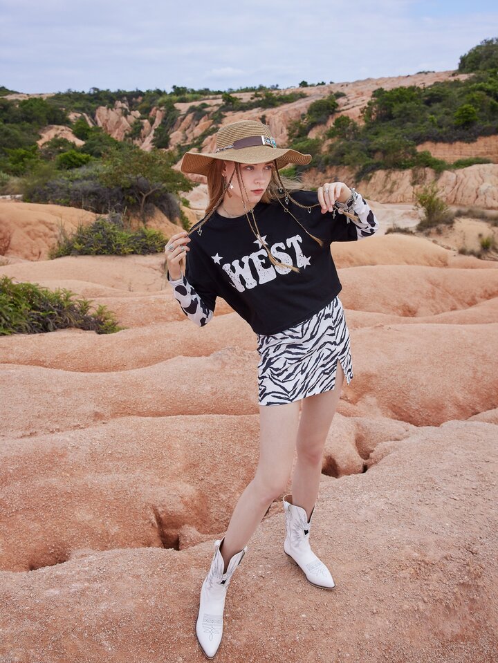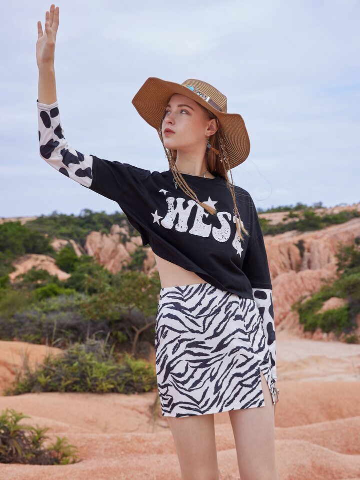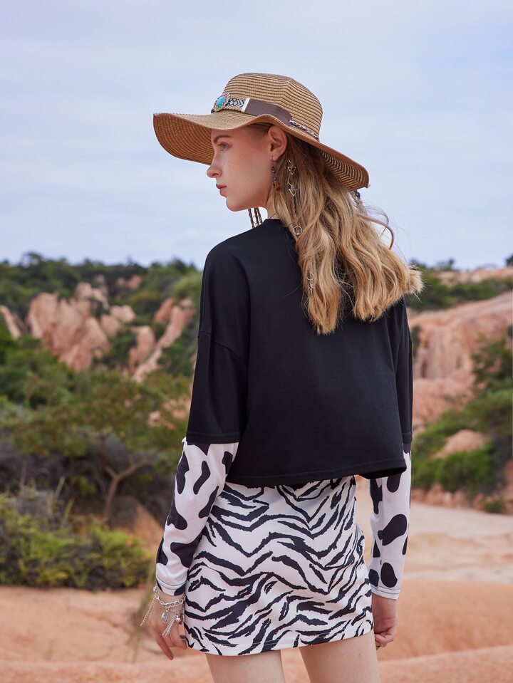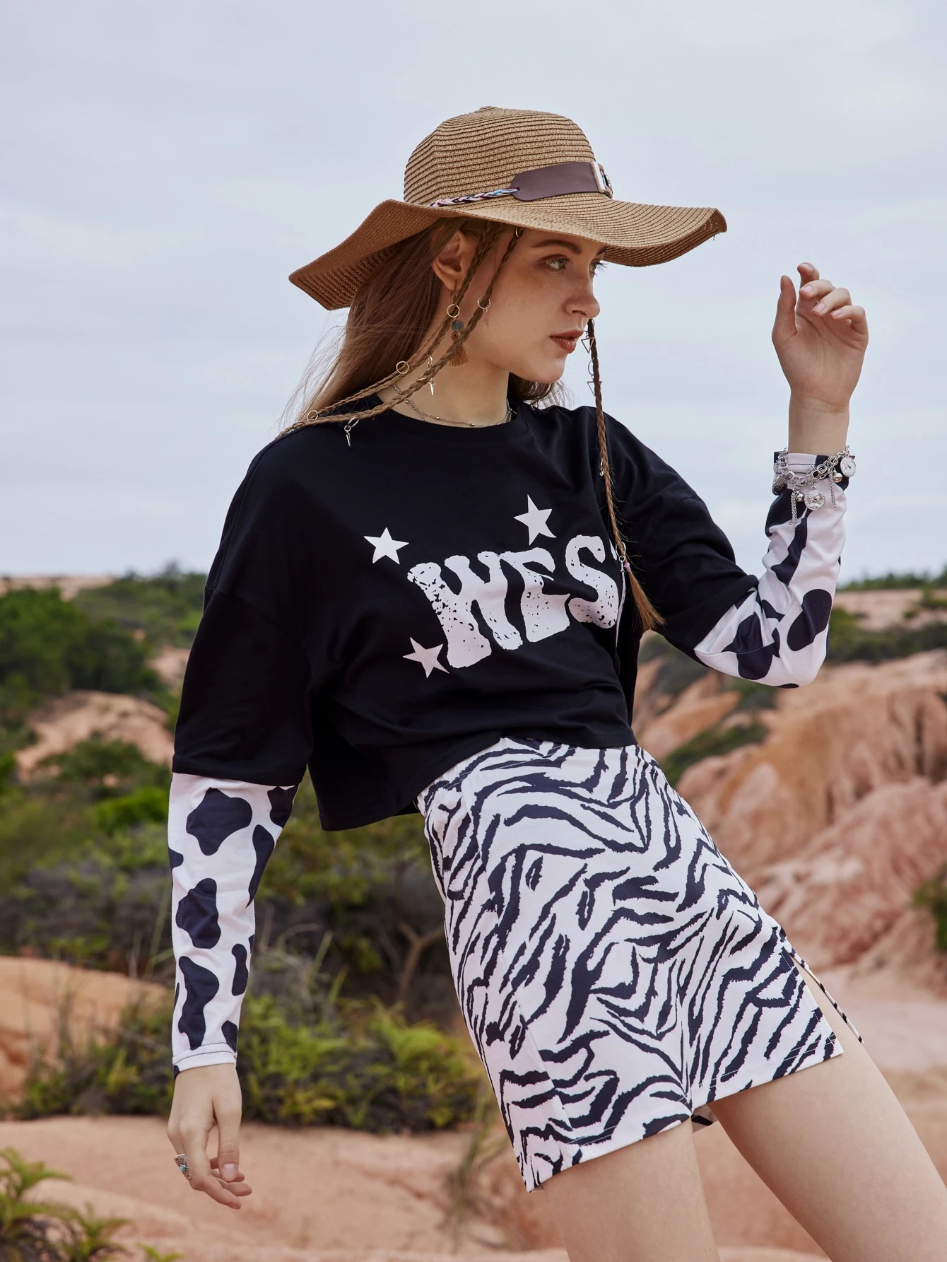 Maglietta corta 2 in 1 lettere con stampa mucca manica