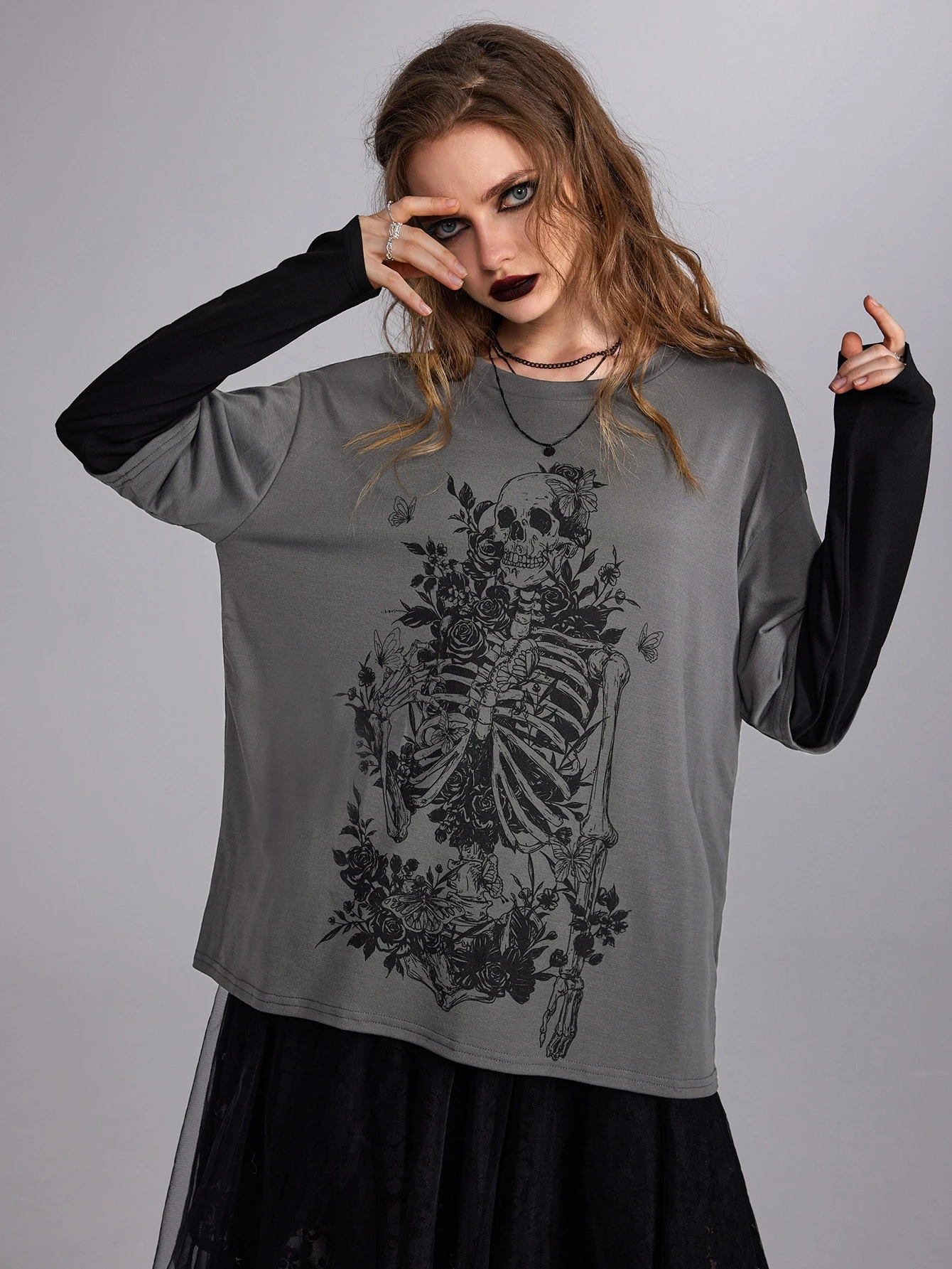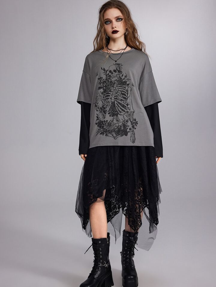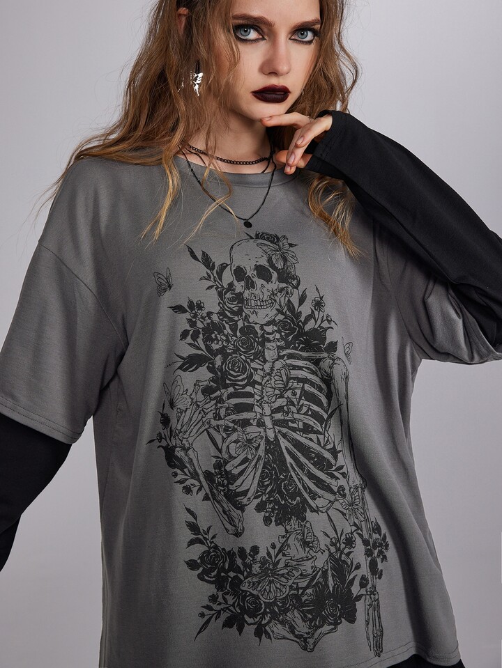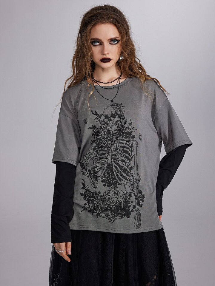 Maglietta con spalla cadenti 2 in 1 con grafica scheletro