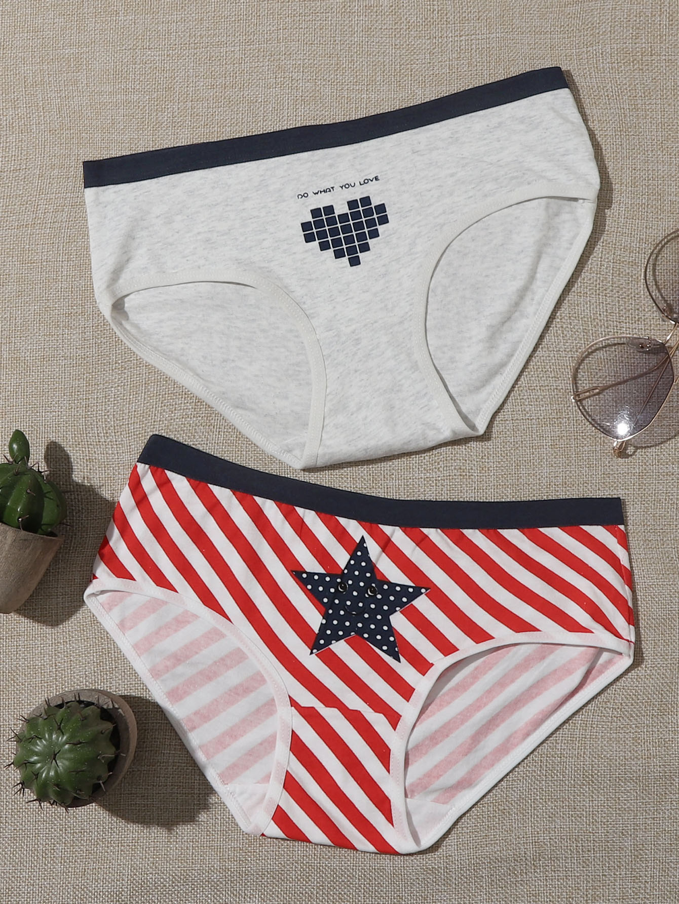 2 Confezioni di Mutande Coordinate con Motivo a Righe e a Stelle