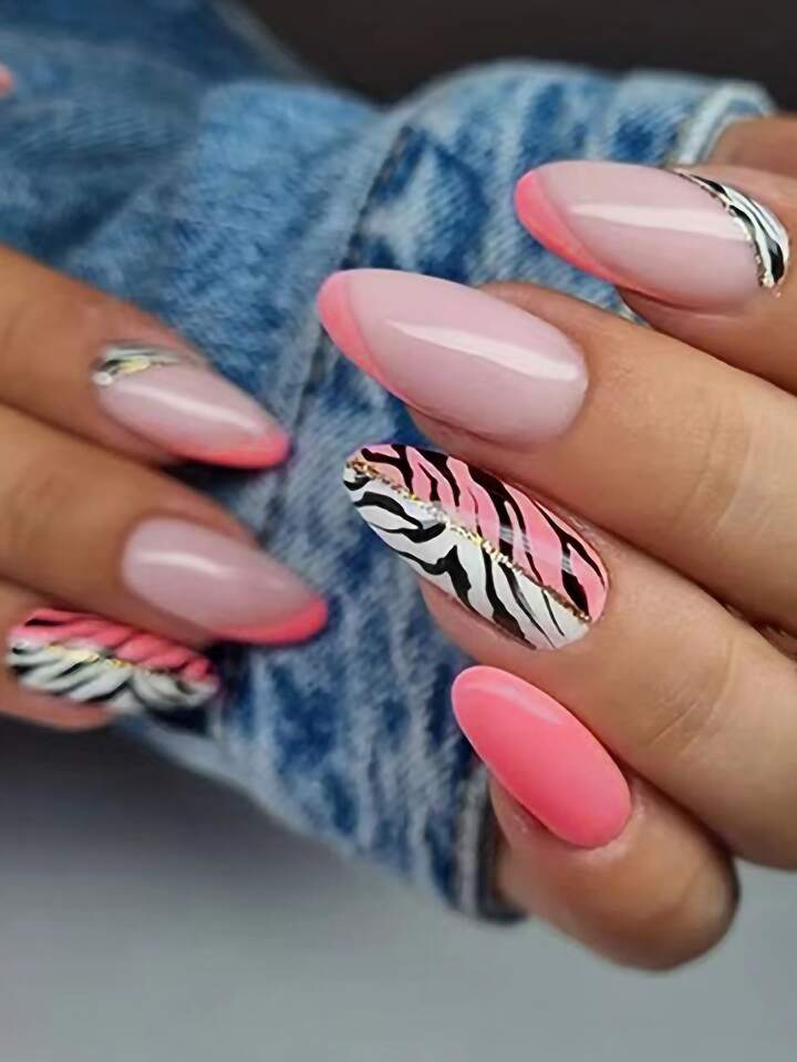 24 pezzi Unghie finte lungo mandorla motivo zebra