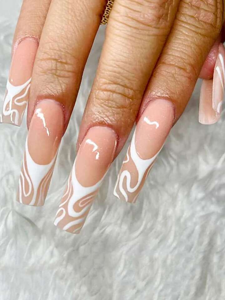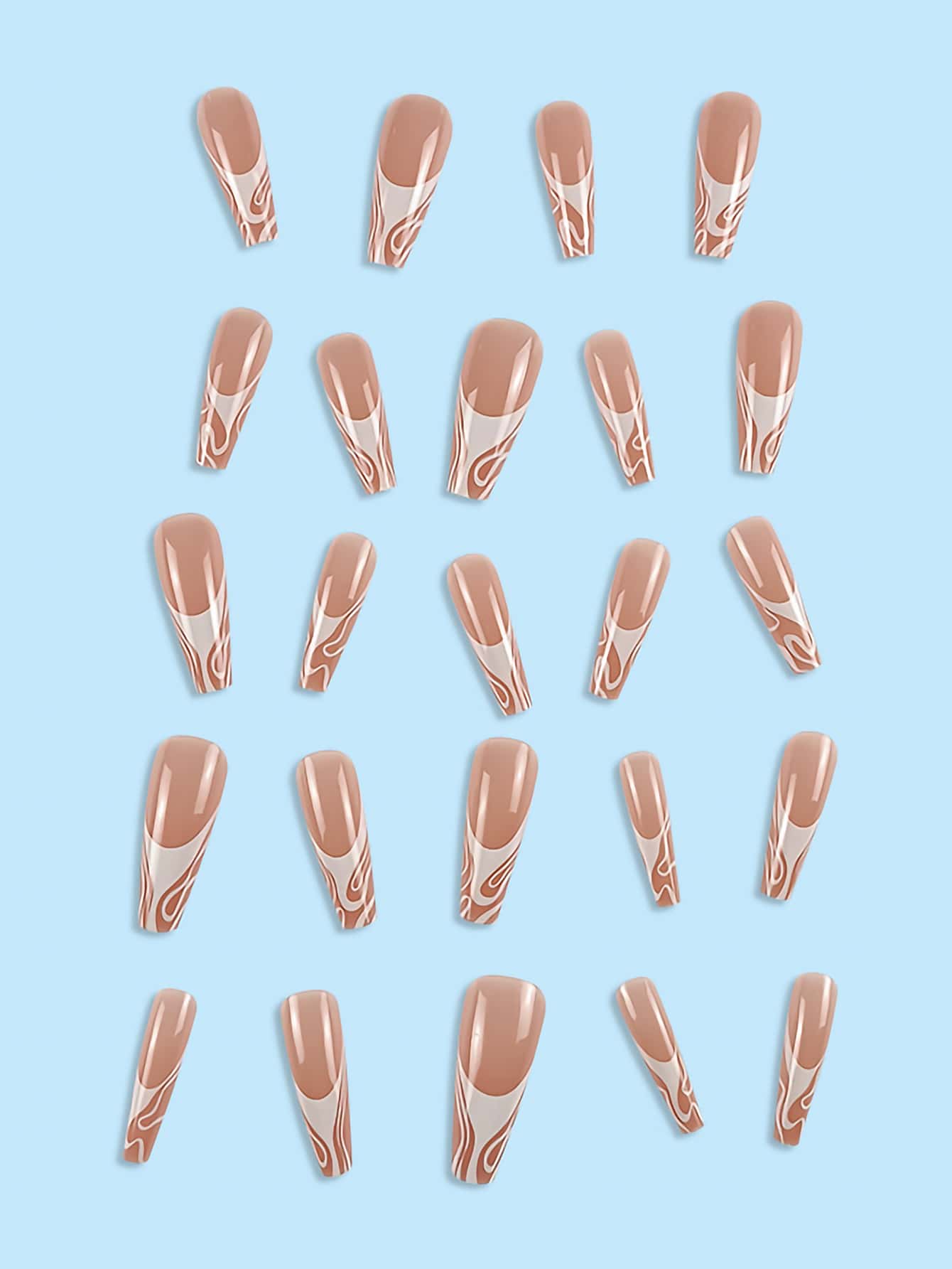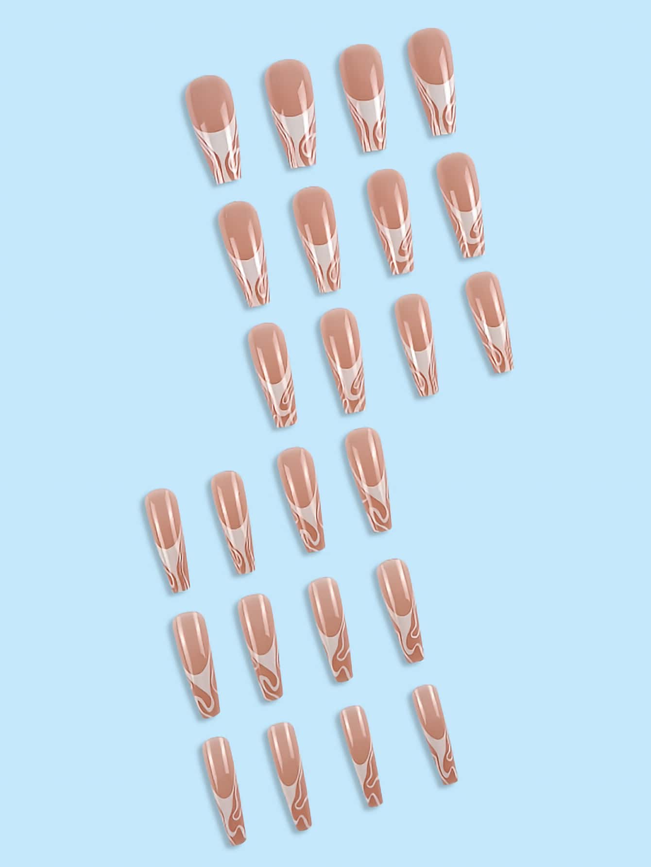 24 pezzi Unghie finte lungo bara modelli righe & 1 foglio nastro per unghie