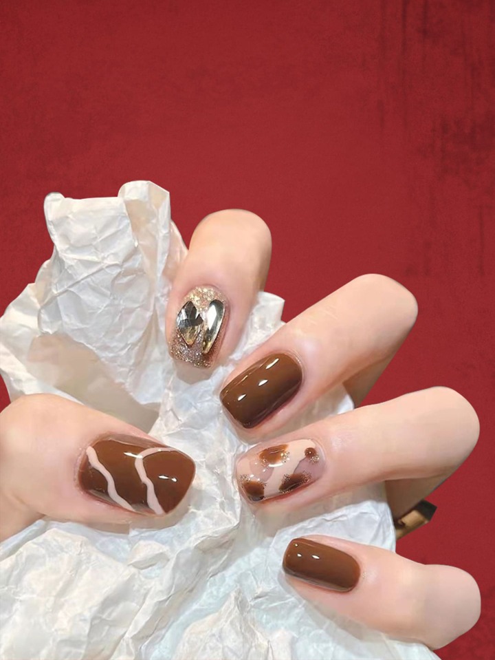 24 pezzi corto quadrato con strass Unghie finte & 1 foglio nastro