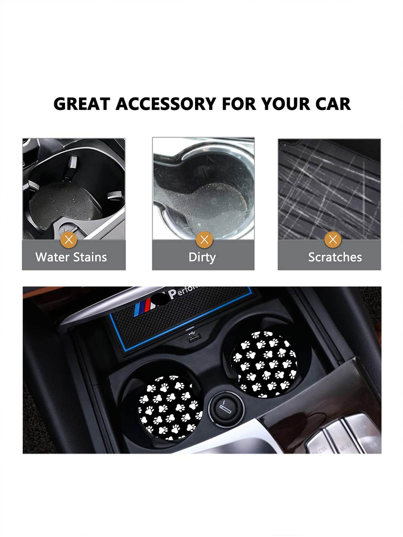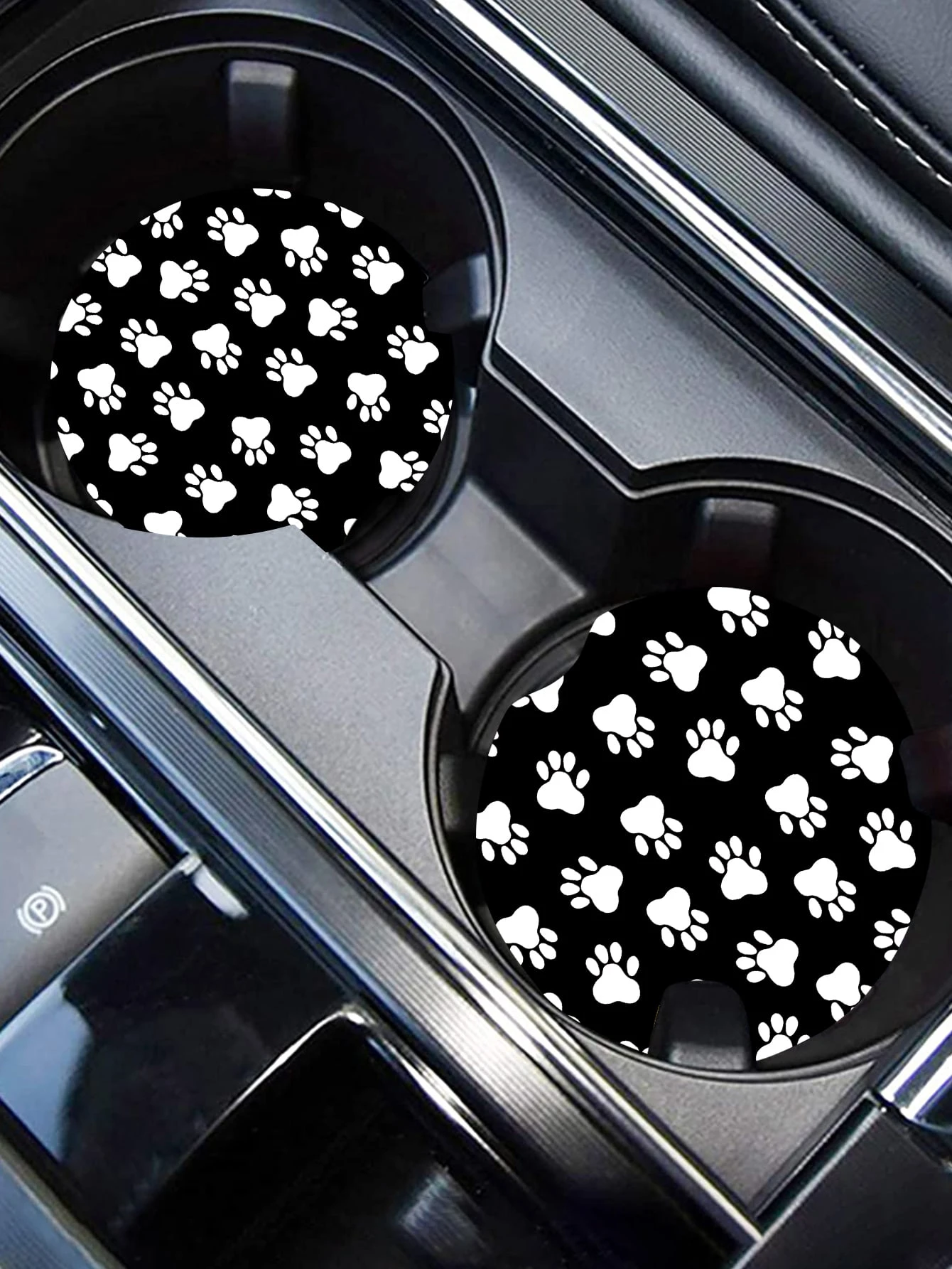 2 pezzi Tappetini porta bicchieri per auto - Nero con stampe bianche di zampa, sottobicchieri creativi e antiscivolo per decorazione e protezione interna