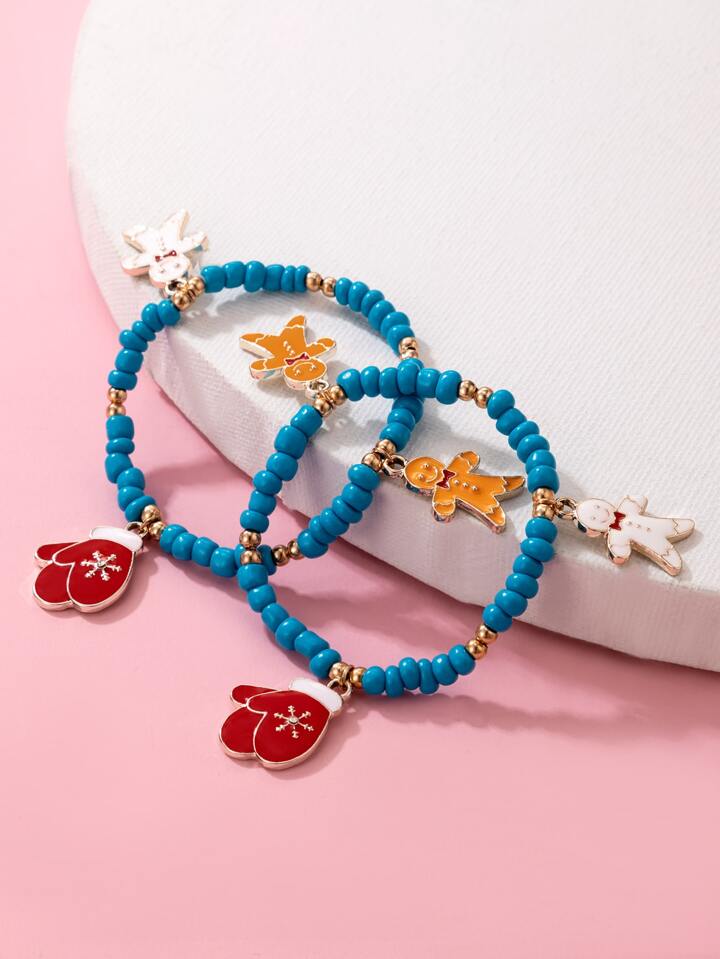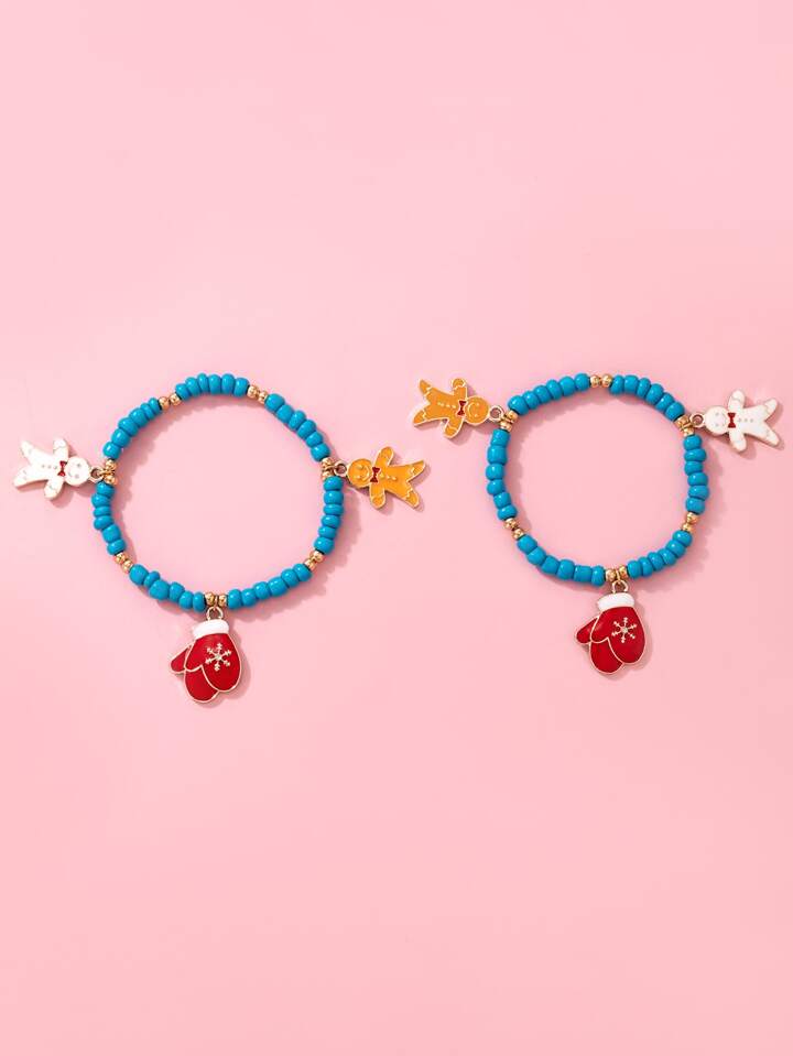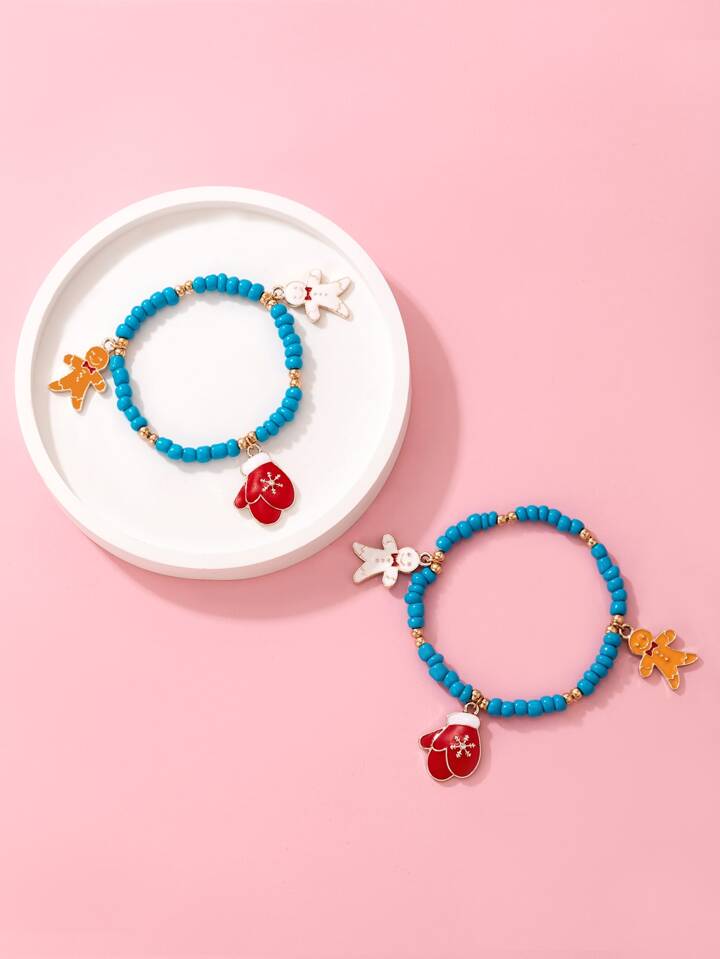 2 pezzi Braccialetto con perline Natale decorato guanti