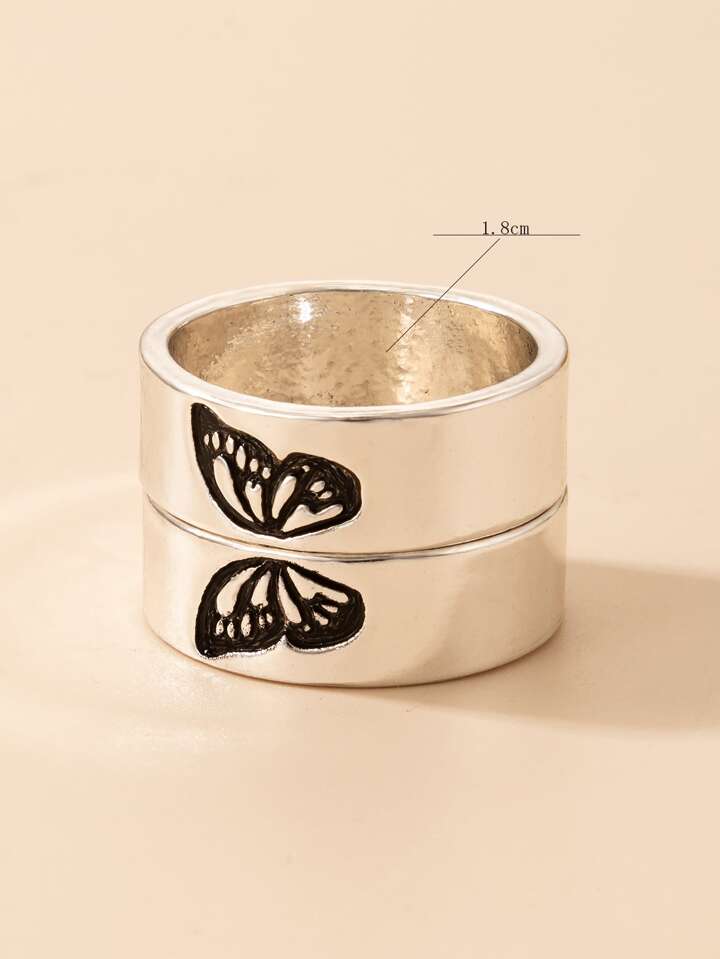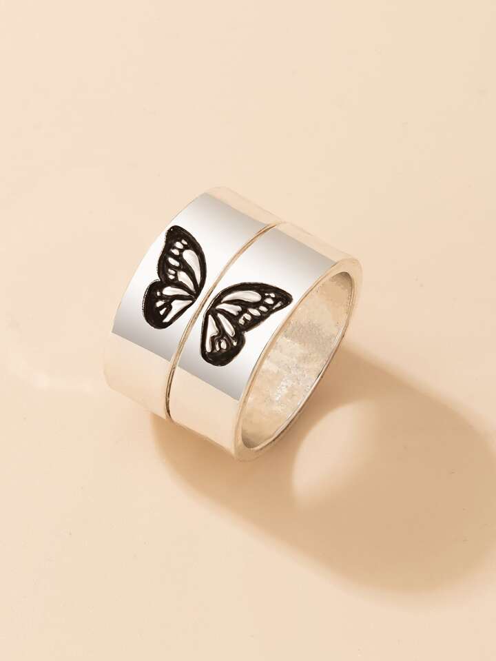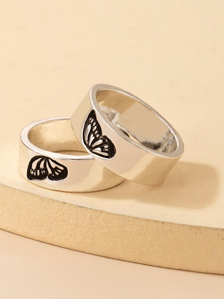 2 pezzi Anello coppia dettaglio farfalla