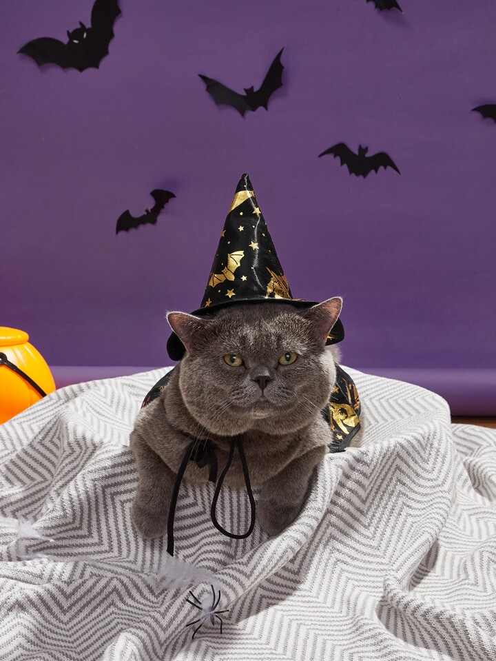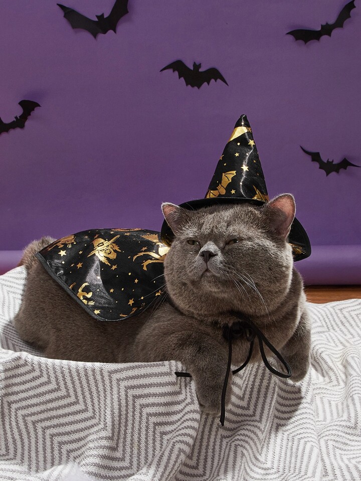 2 pezzi Set mantello e cappello con motivo di Ognissanti per animali domestici, costumi di Ognissanti