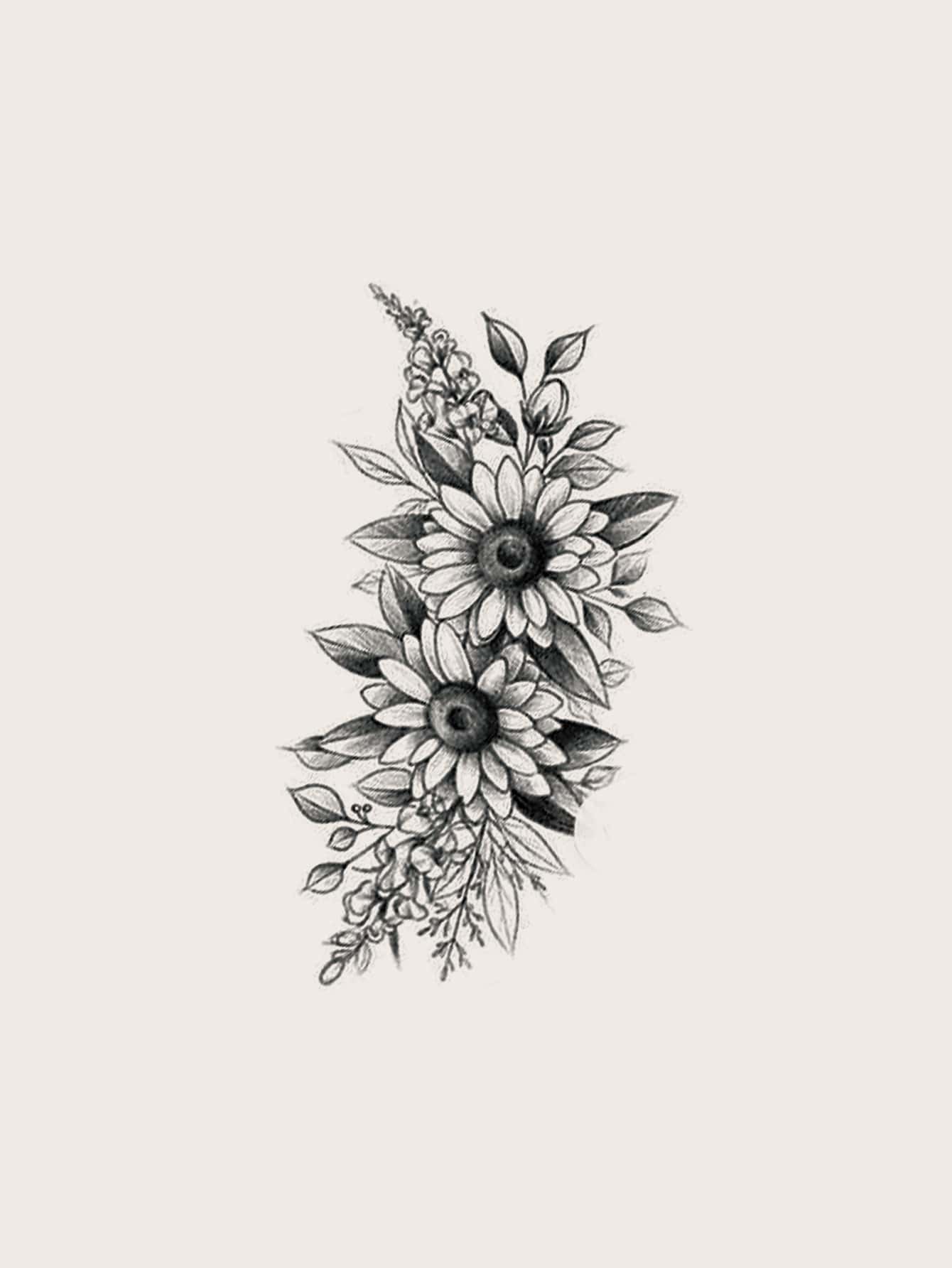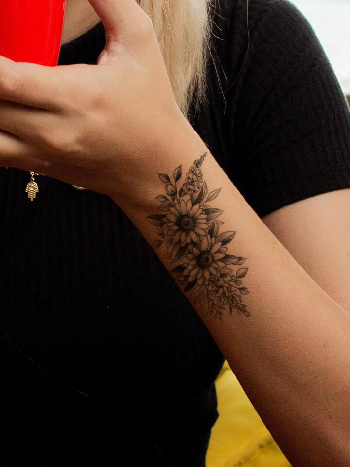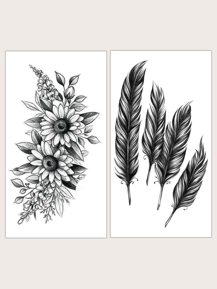 2 fogli Tatuaggio fiore & con stampa piume