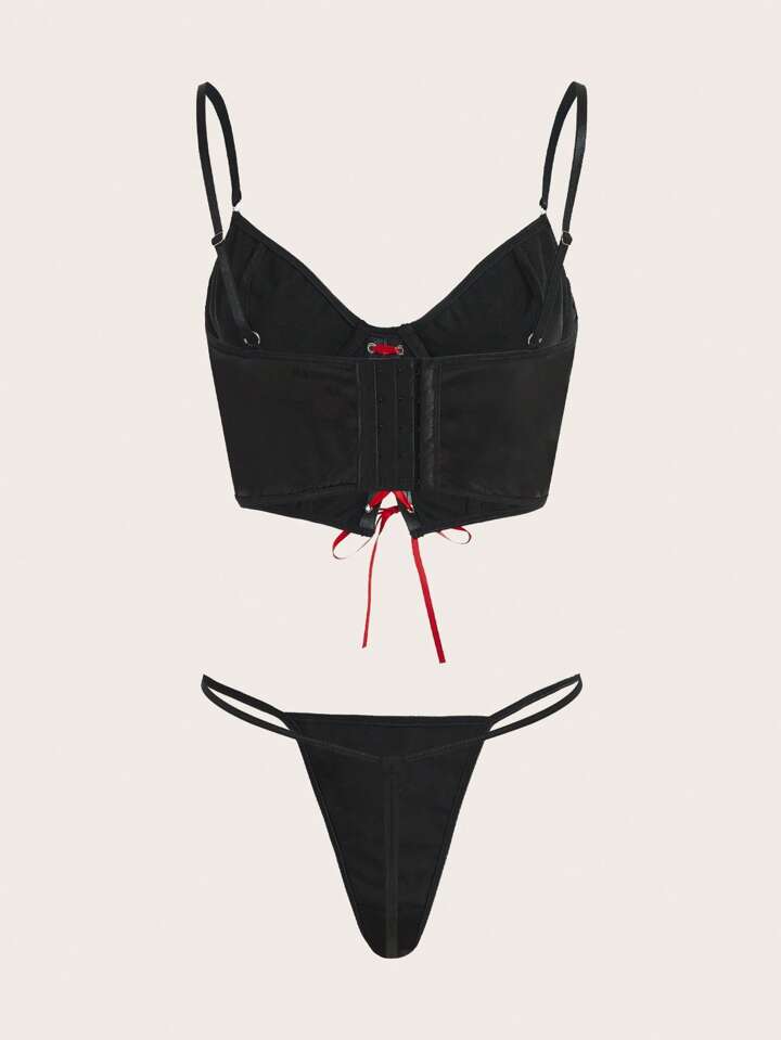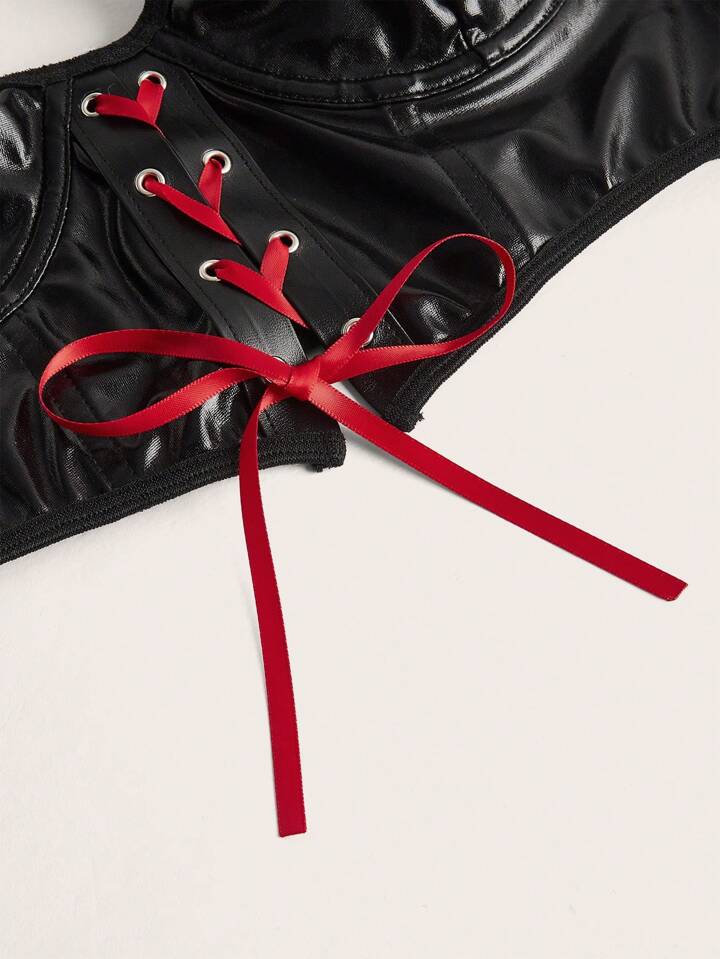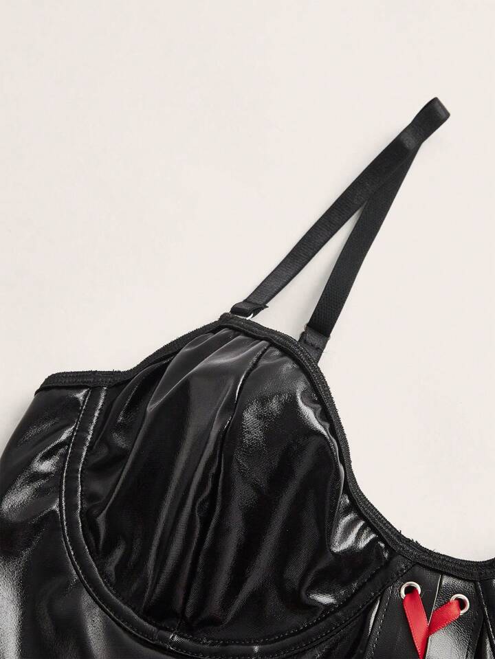 Goth 3 Confezioni di Set di Lingerie in PU Stile Gotico con Laccetti Frontali