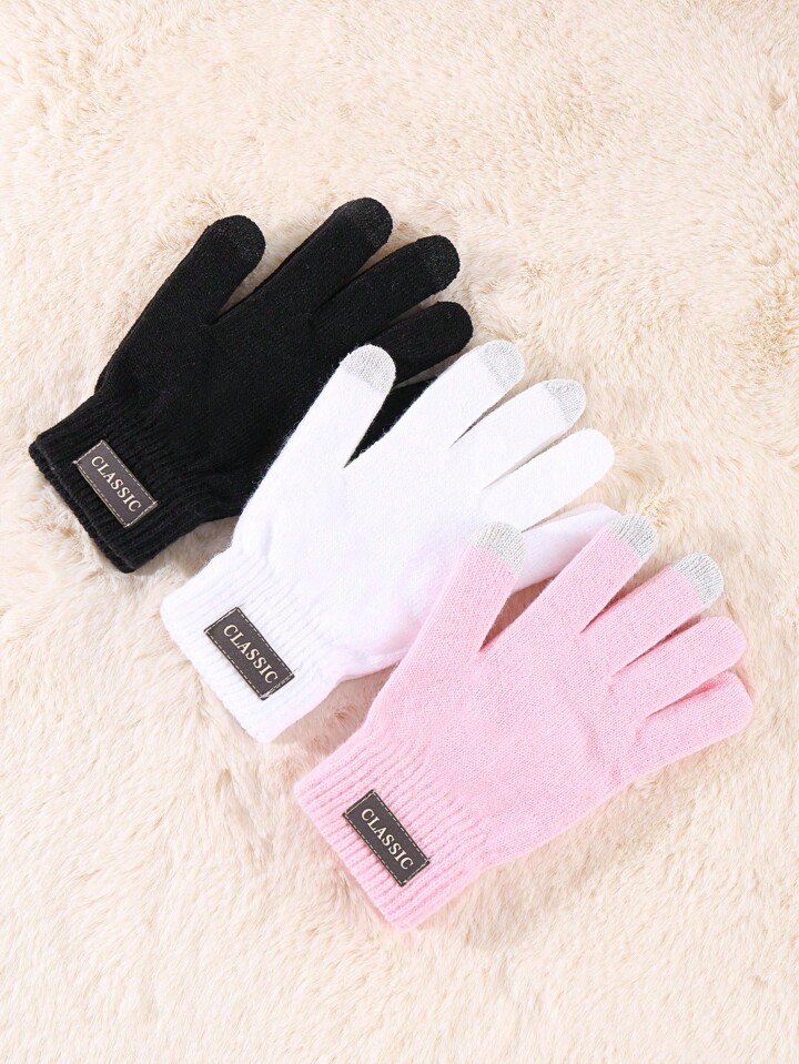 3 paia di guanti invernali da donna per touch screen - guanti in maglia alla moda con polsini spessi per il freddo