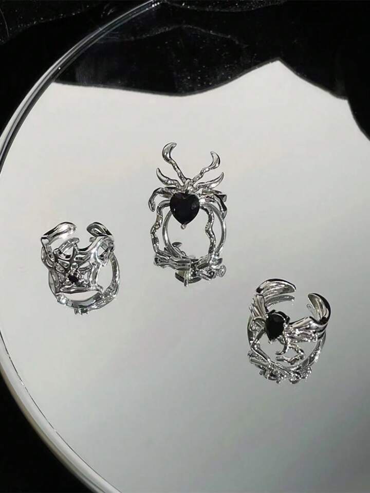 Goth 3 pezzi Anello funky ferro lega con design ragno per donne per decorazione quotidiana