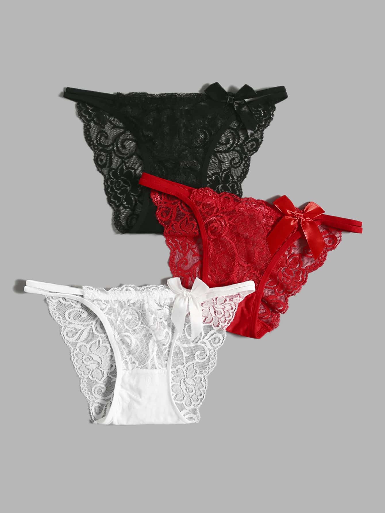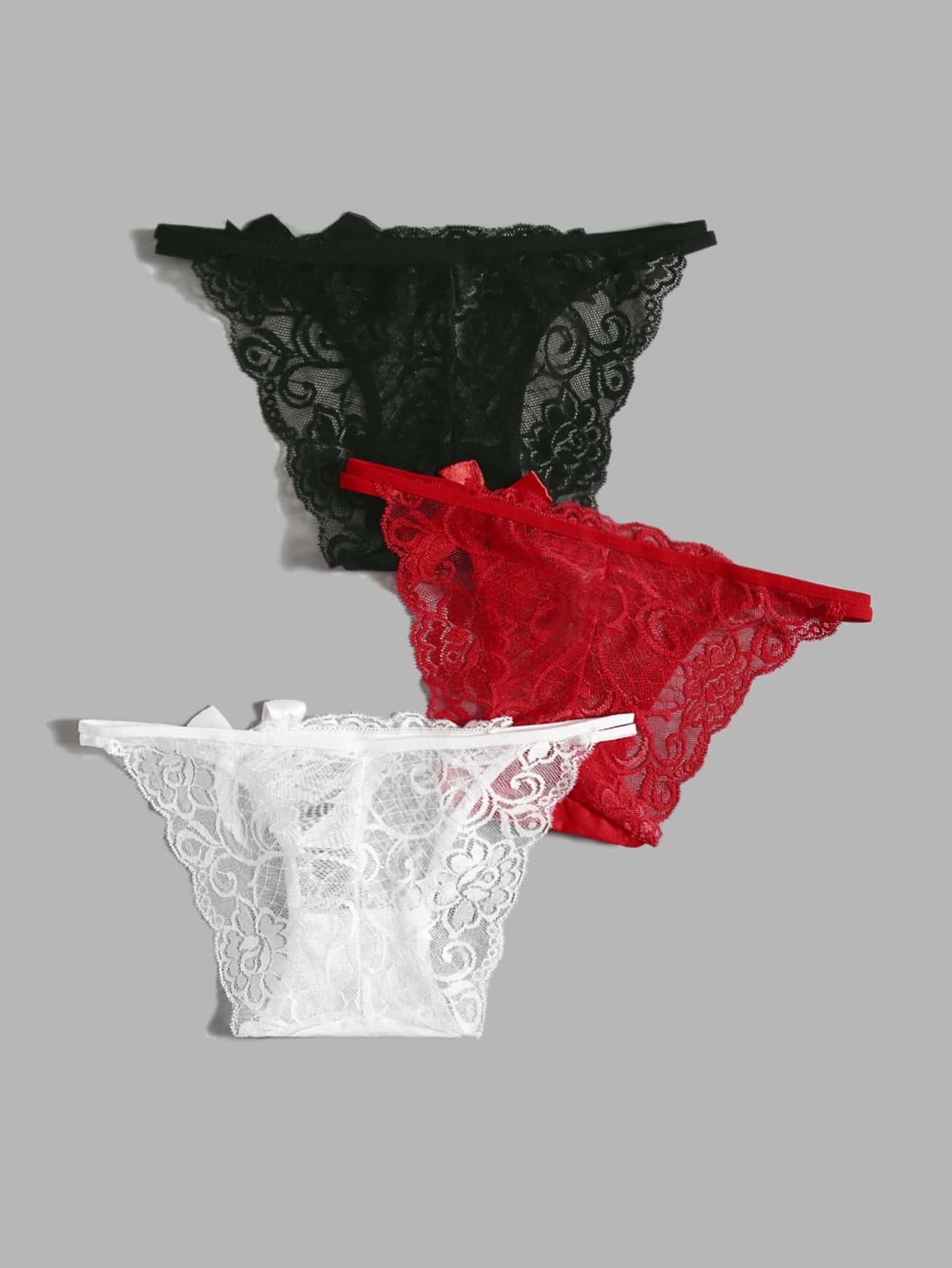 3 pacchi Set mutandine pizzo floreale con decorato fiocco
