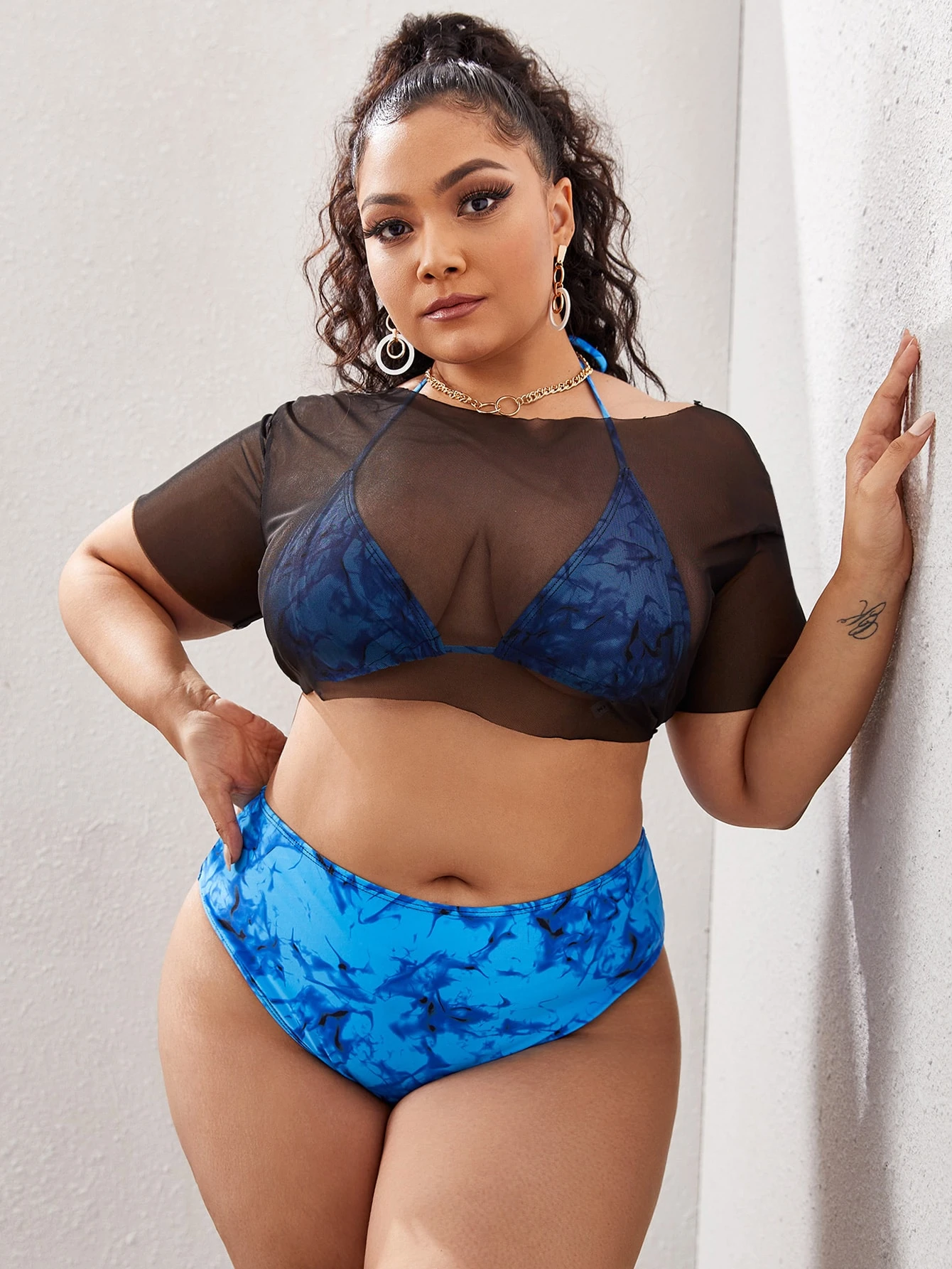 3 confezioni Costume da bagno triangolare in rete tie-dye taglie comode per l estate in spiaggia