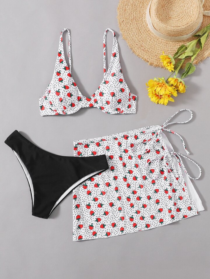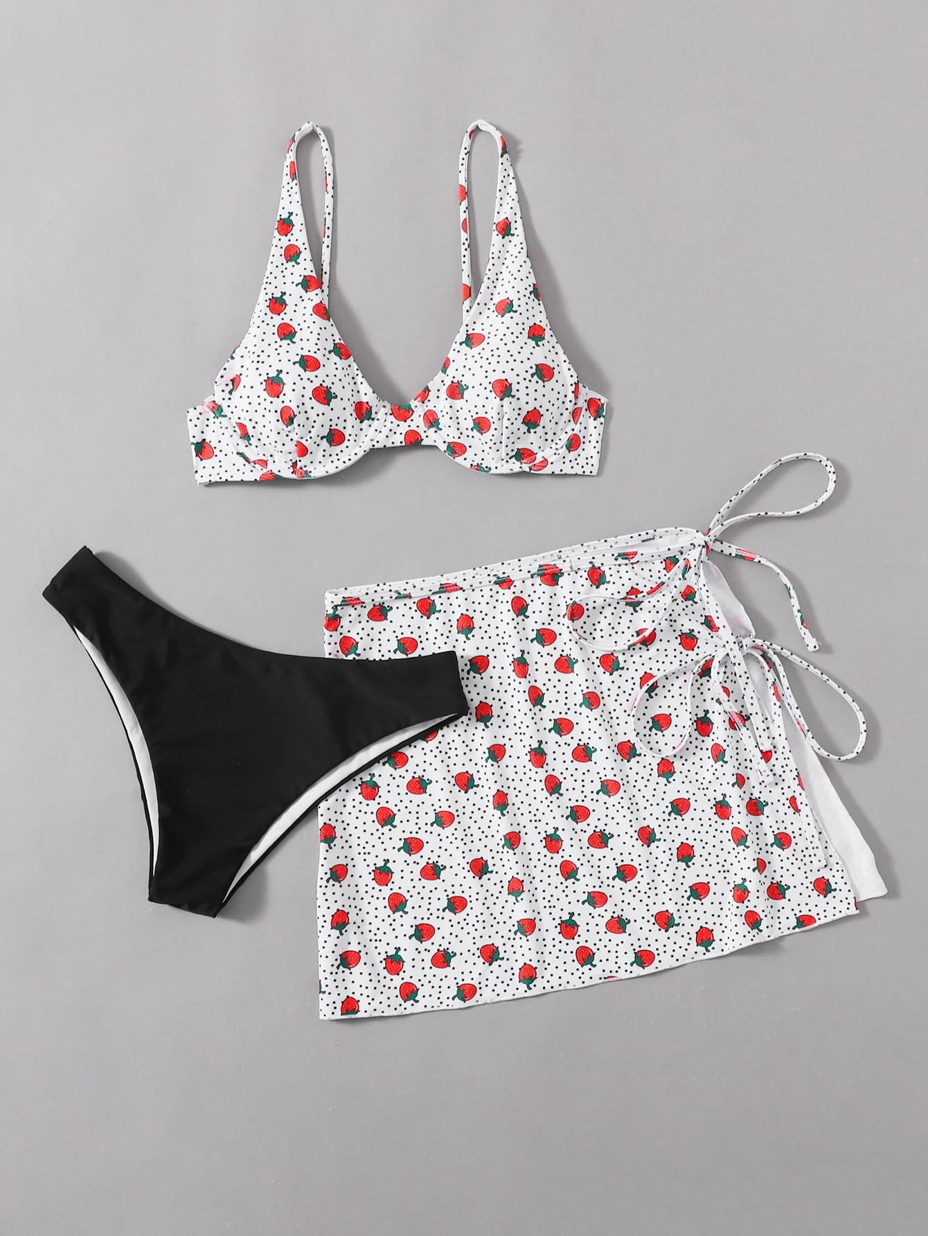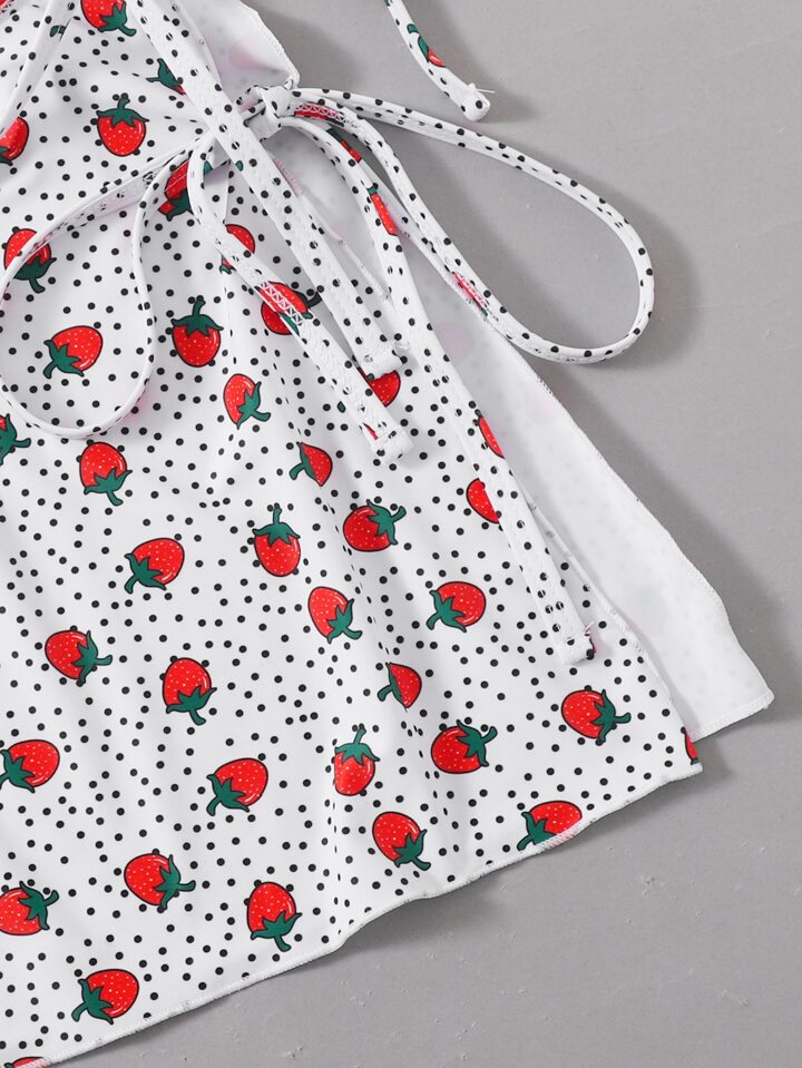 Set di bikini alla fragola 3 con gonna da spiaggia