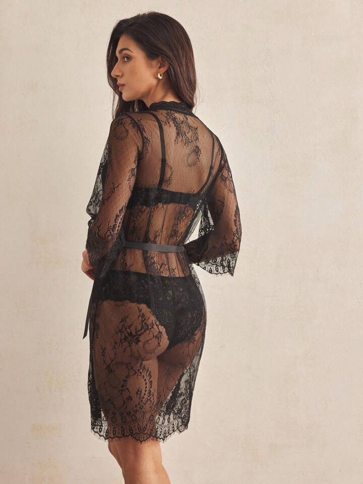 Vestaglia di pizzo floreale con cintura, lingerie