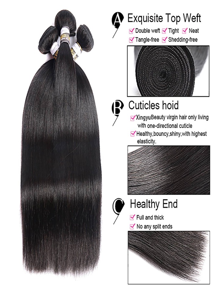 3 pezzi fasci di tessuto per capelli umani lunghi dritti al 150%