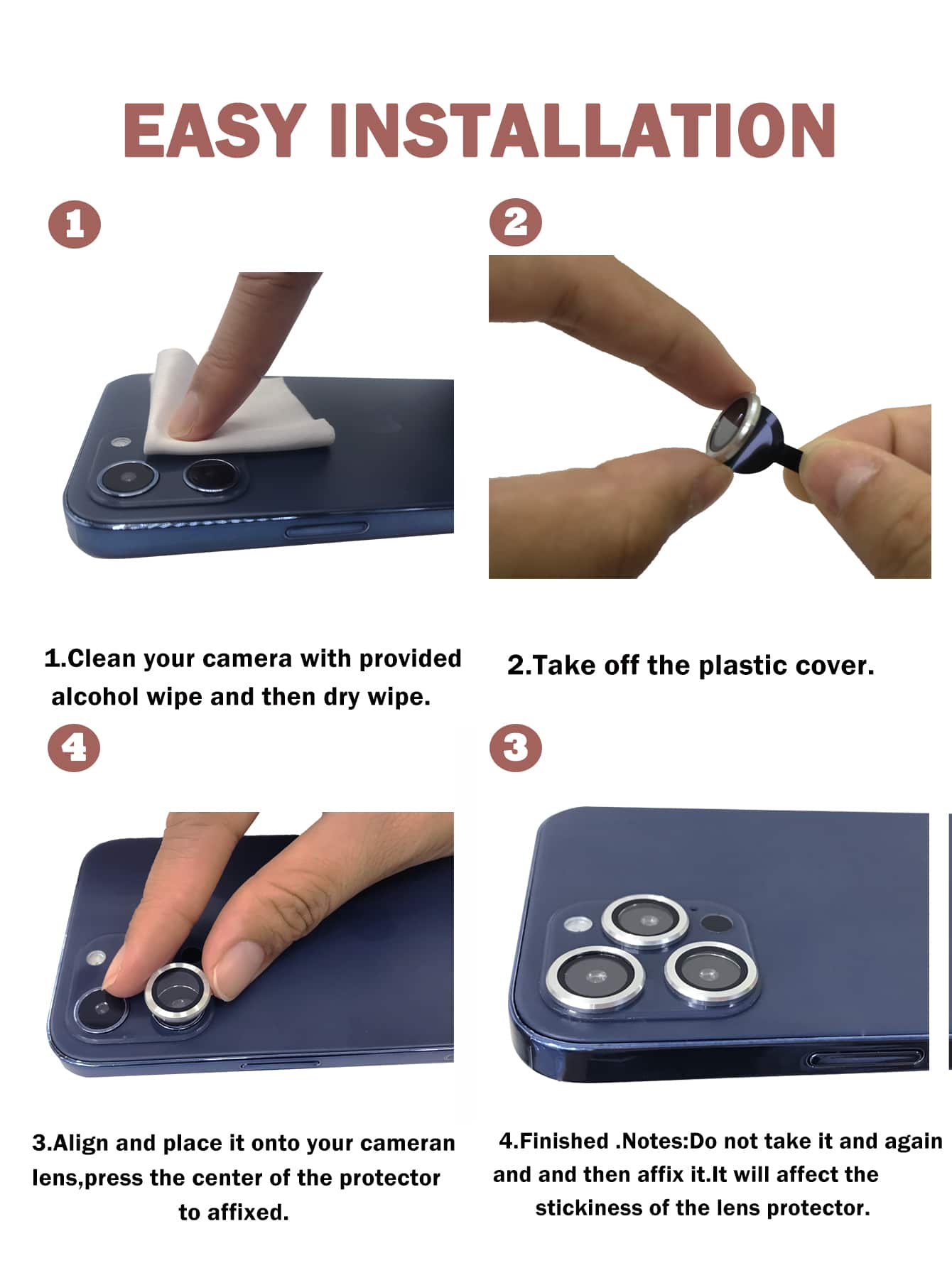 3 pezzi pellicola per lenti del telefono ad occhio di aquila di metallo
