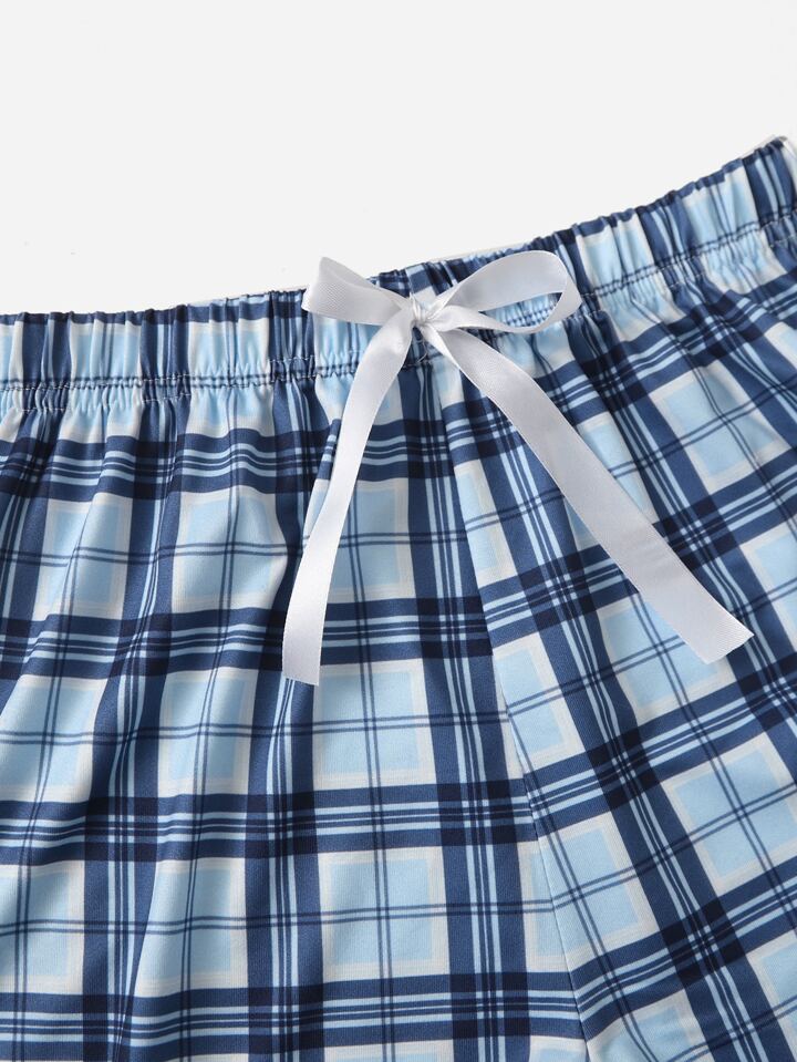 3 pezzi Set pigiama/Set camicia da notte con cami con nodo a quadri