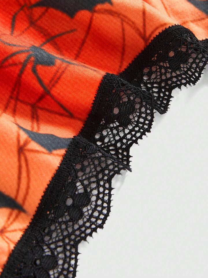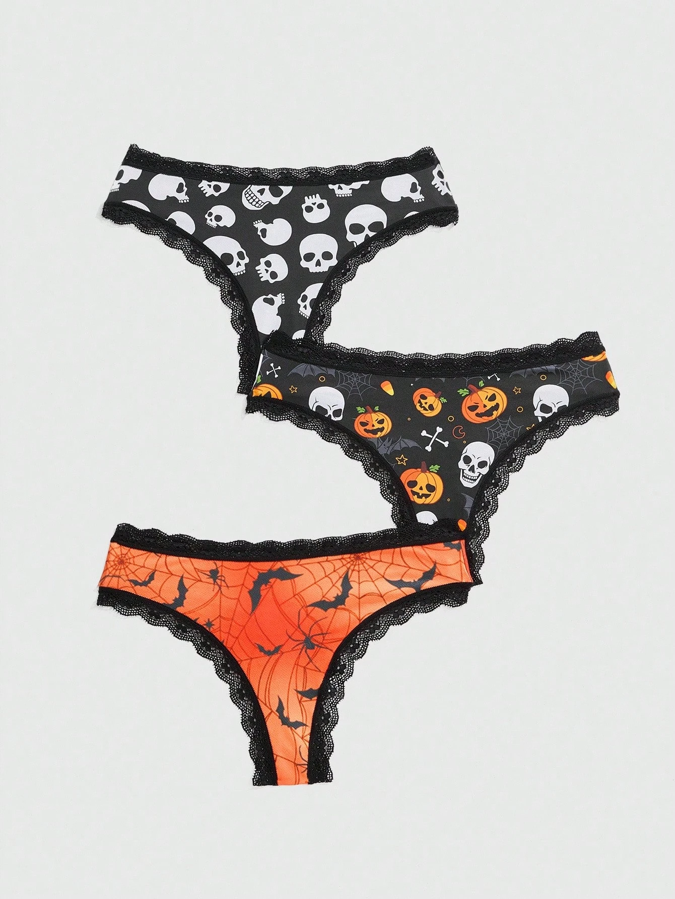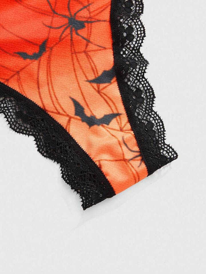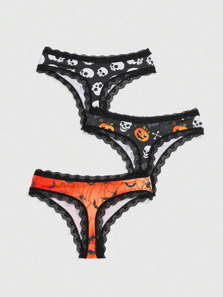 Goth Set da 3 pezzi di mutandine in pizzo con decorazioni gotiche di ragnatela, pipistrello, teschio, zucca, stella e luna per Ognissanti