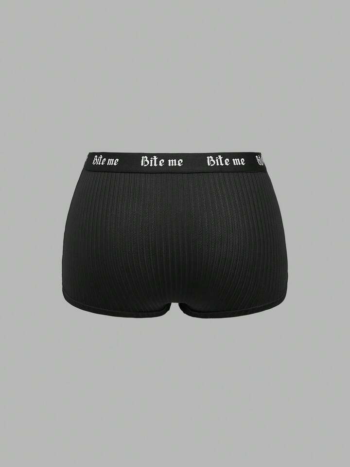 Goth Set da 3 pezzi di mutande in maglia a costine di taglia comoda con motivo scheletro, stile gotico