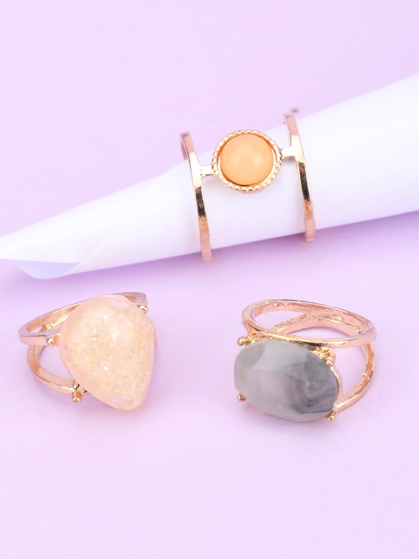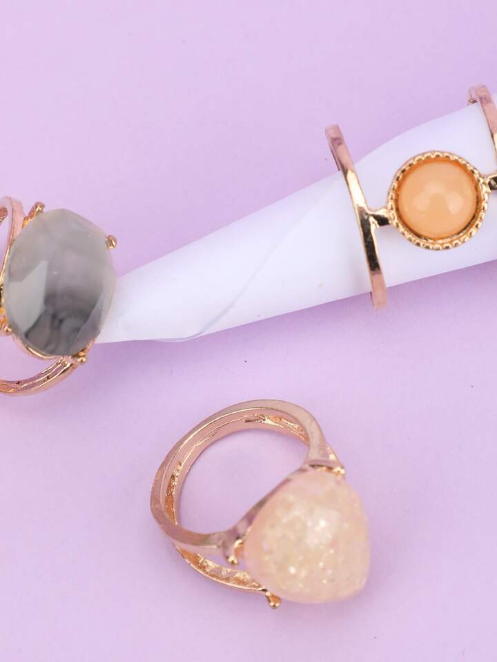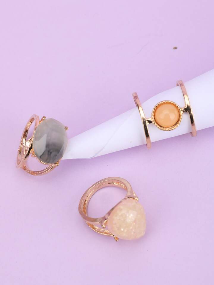 3 pezzi Anello decorato pietra