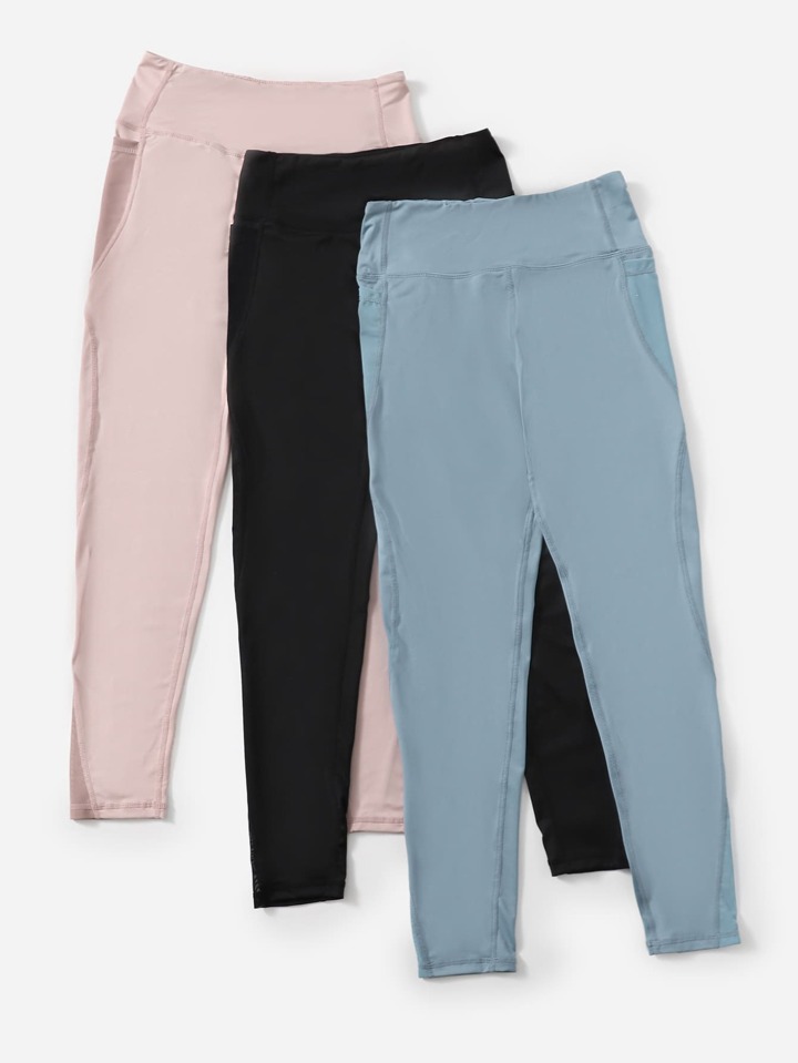 3 pezzi Leggings da allenamento morbido traspirante Collant da corsa ad alta elasticità con tasca per telefono