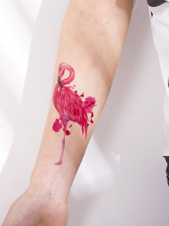 3 fogli Tatuaggio cuore & con stampa fenicottero