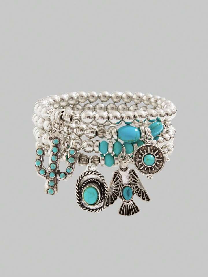 Set da 4 pezzi di braccialetti stile western hippie con aquila, cappello da cowboy e perline di turchese e cactus