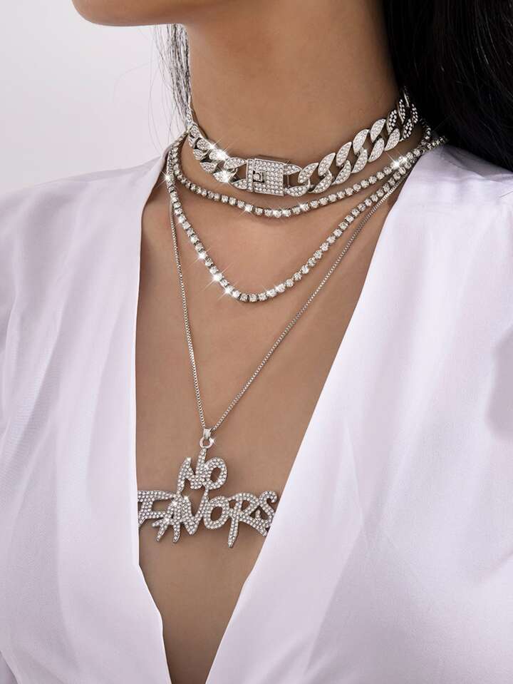 4 pezzi collana decorata con strass