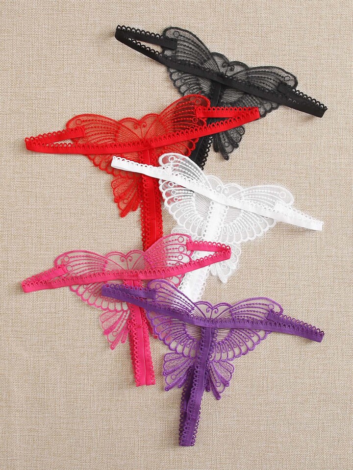 5 pezzi set mutande perizoma con farfalla e pizzo