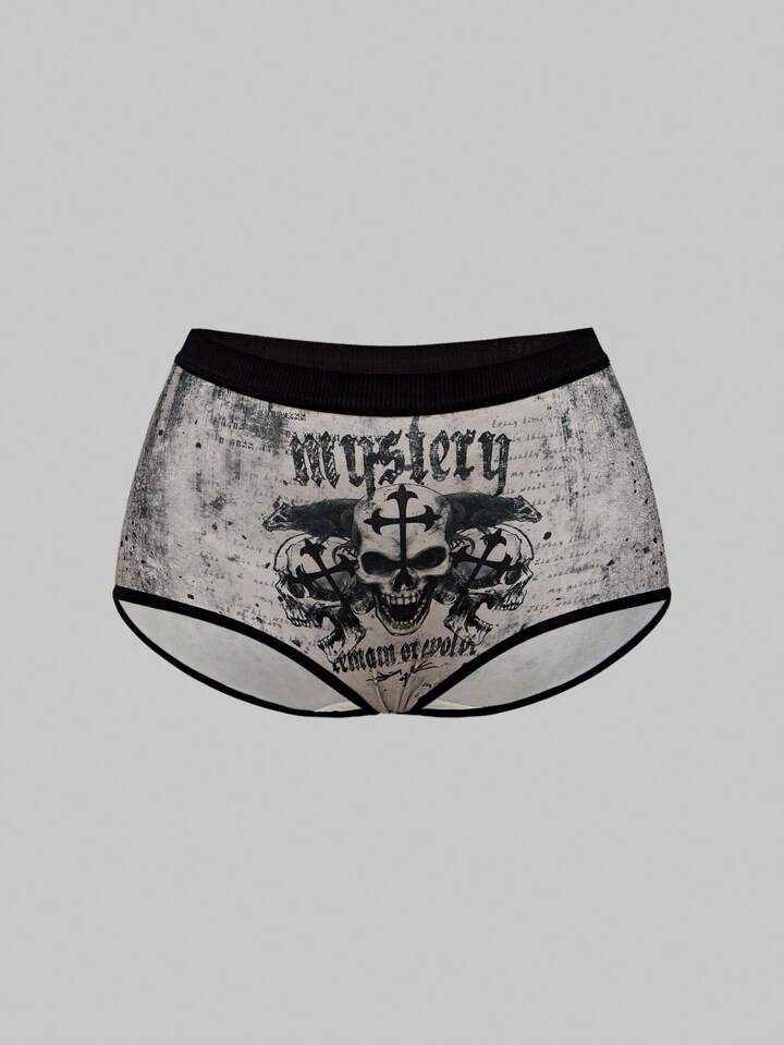 Goth Set da 5 Pz Slip in stile gotico con motivi di scheletro, serpente e croce in pizzo a maglia