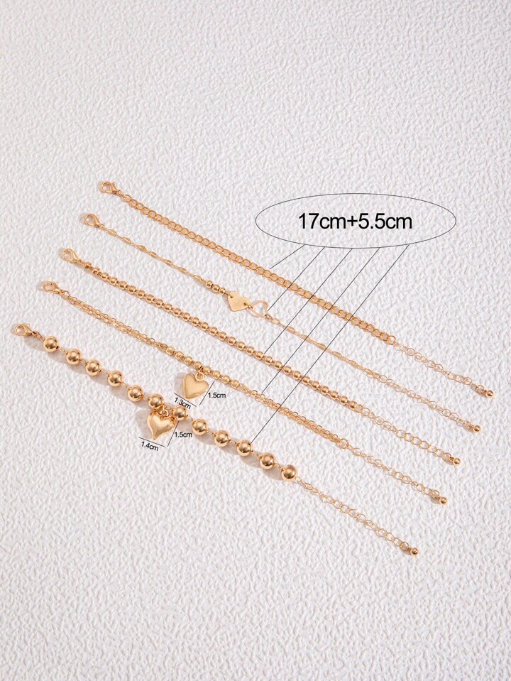 5 pezzi/set semplice & alla moda stile ins lega 3D a forma di cuore pendente grande perline riso perline con perline scavato doppio cuore geometrico Braccialetto a catena per donne regalo di festa